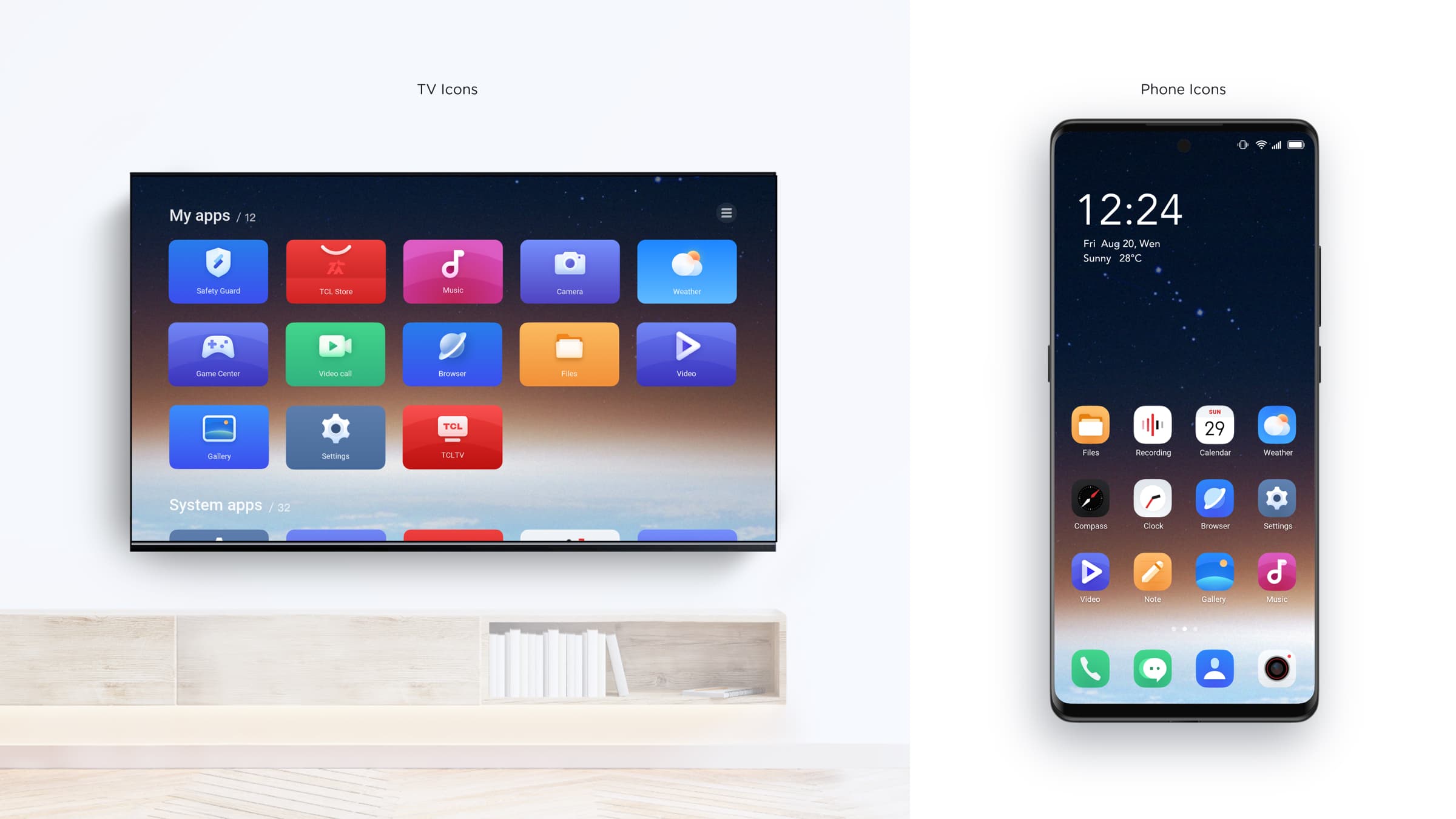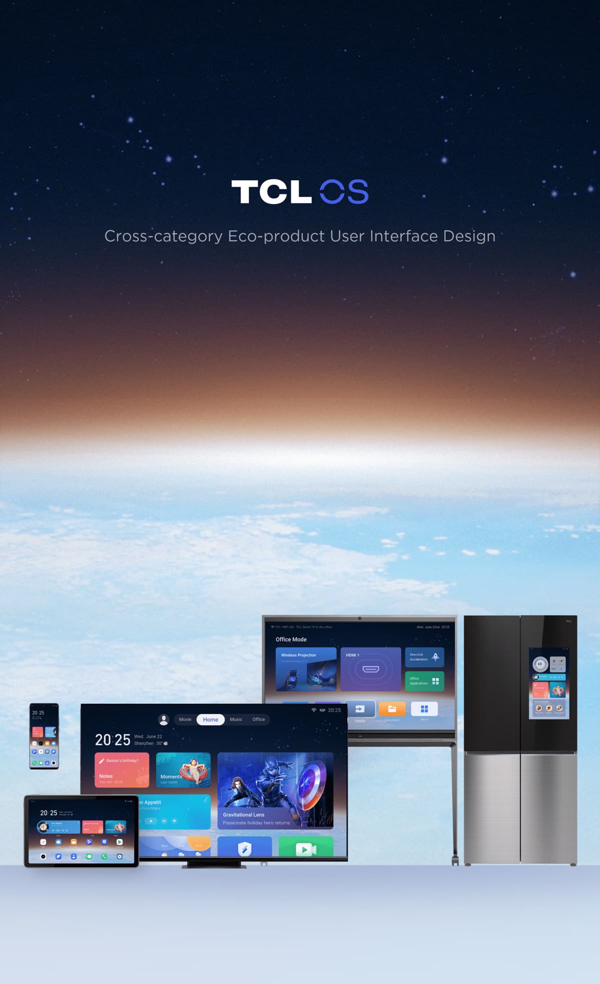 TCL OS 融合了“科技和人文”的品牌理念,旨在通过统一的设计语言,拉通全品类系统/软件应用层面的用户体验。“引力场”是TCL OS的年度设计主题,灵感来自于万有引力。宇由中各天体之间存在相互作用力,同样人机交互界面中的图标、系统控件等元素之间也存在着相互引力,让界面更加有序和活力。