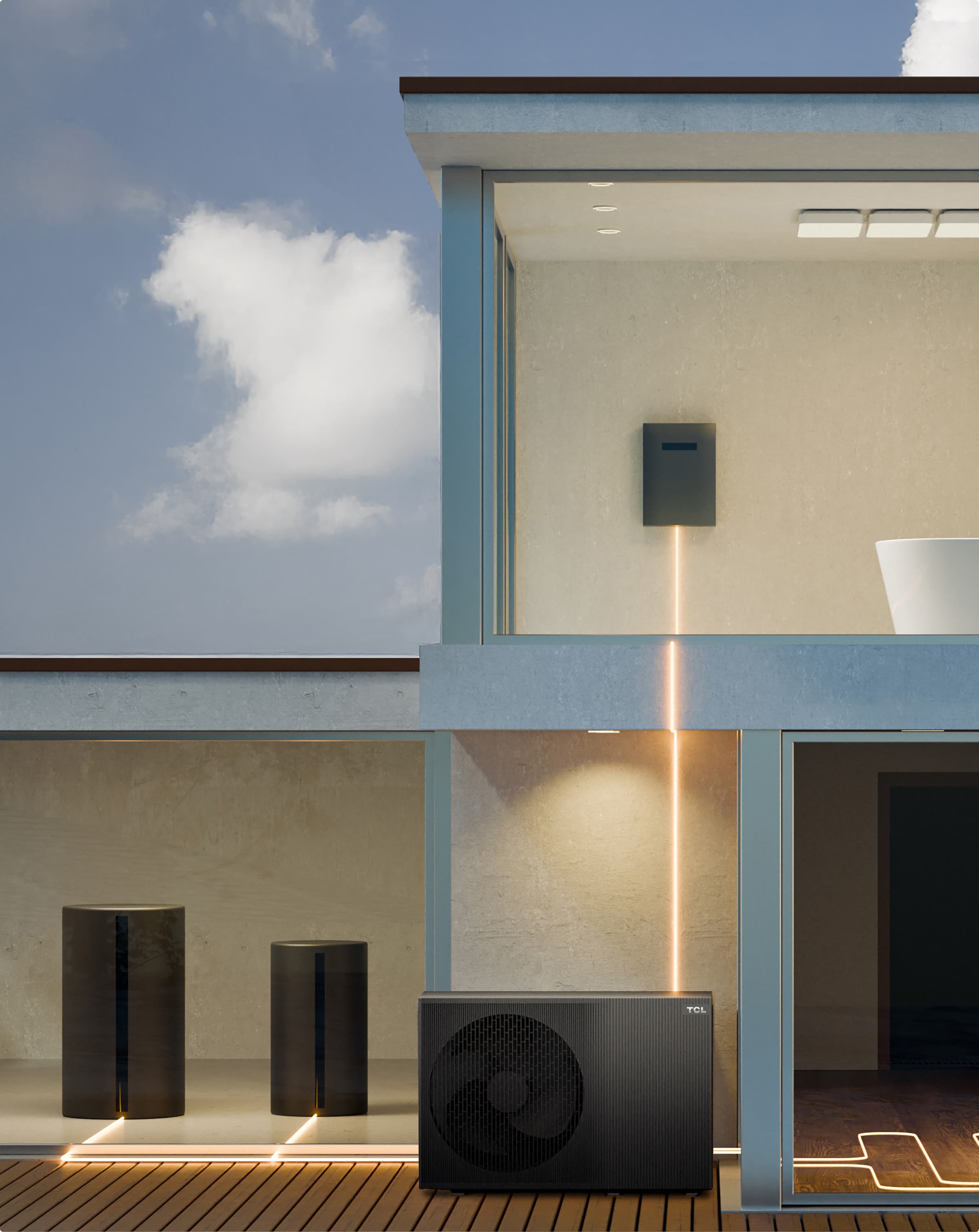 TCL R290 三联供(热泵)外机是一款使用绿色能源系统的空气能热泵解决方案,适用于住宅和商业空间的供暖和制冷。它解决了传统系统的诸多挑战,如能源效率和空间利用率。通过空气能(ATW)技术,即使在寒冷天气中,它也能从室外空气中高效捕获热量,并与太阳能板连接,减少对化石燃料的依赖。专为寒冷气候设计,其垂直螺旋格栅优化了散热效果,有效降低噪音,并防止积雪堆积,为用户提供环保、舒适的使用体验。