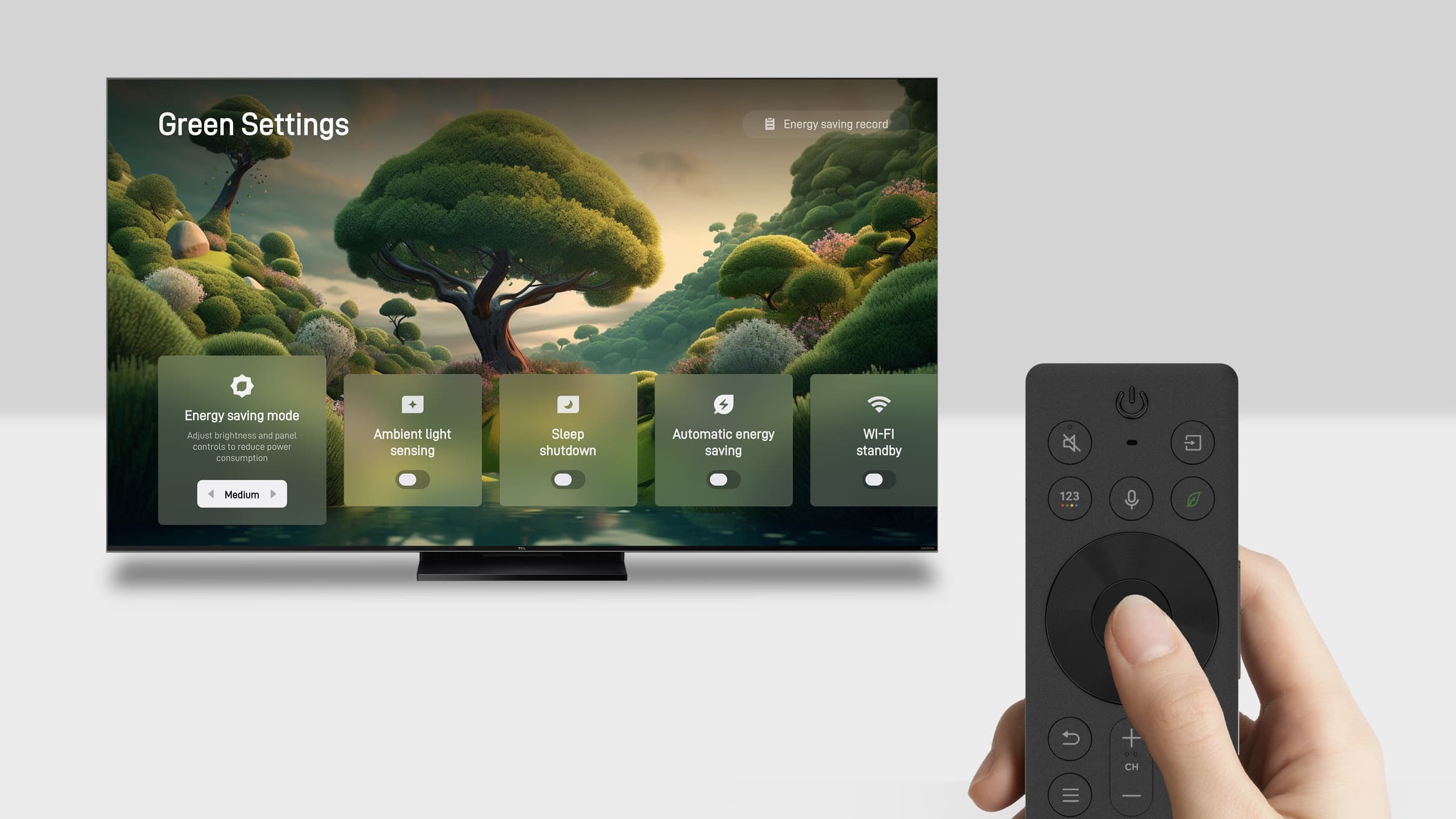 The TCL RC9/RC8 Series Solar Remote consistently applies sustainable principles in both its manufacturing and ongoing operation.