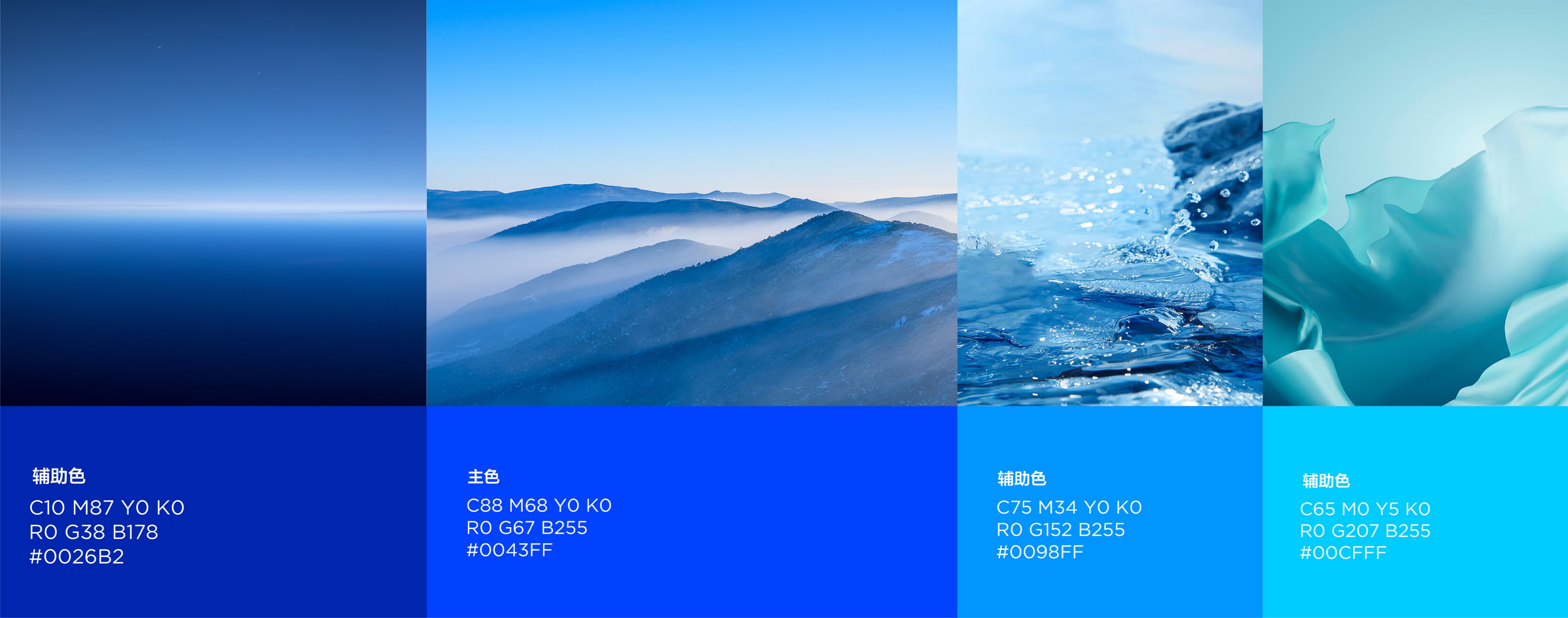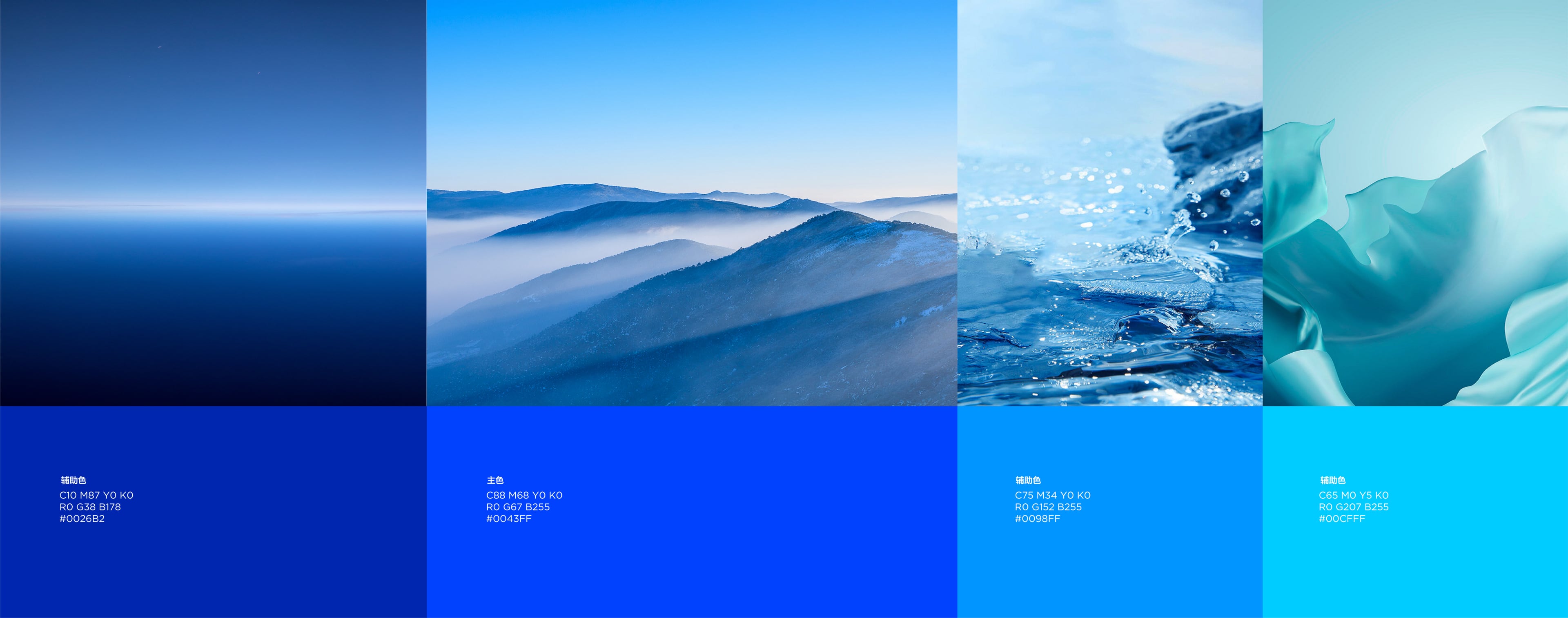 为了提高灵控桌面logo在终端的适配性,logo将采用高纯度、轻快明亮的色彩为主。轻透、明亮的色彩情绪也是表达出灵控桌面的灵动、几何的产品情绪。在竞品中我们也发现,大多数竞品采用渐变炫彩色为主,为了与拉开差距,我们将采用蓝色为主色调。同时蓝色调强调了灵控桌面的科技属性,也是灵悉UI的主色调(瀚宇蓝),让其在色彩上统一。