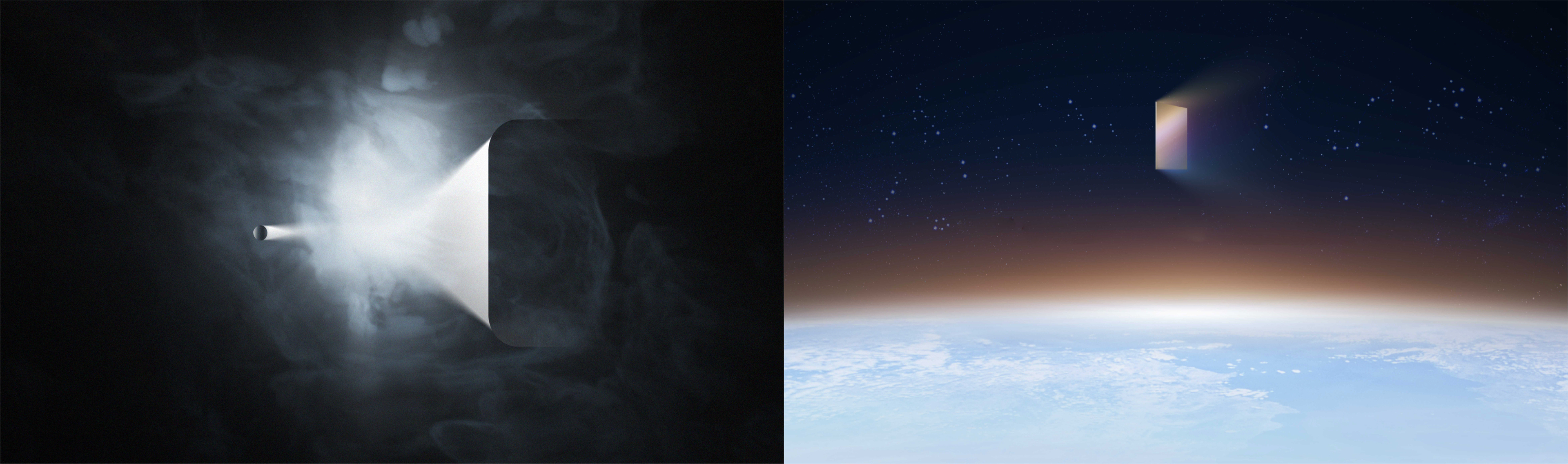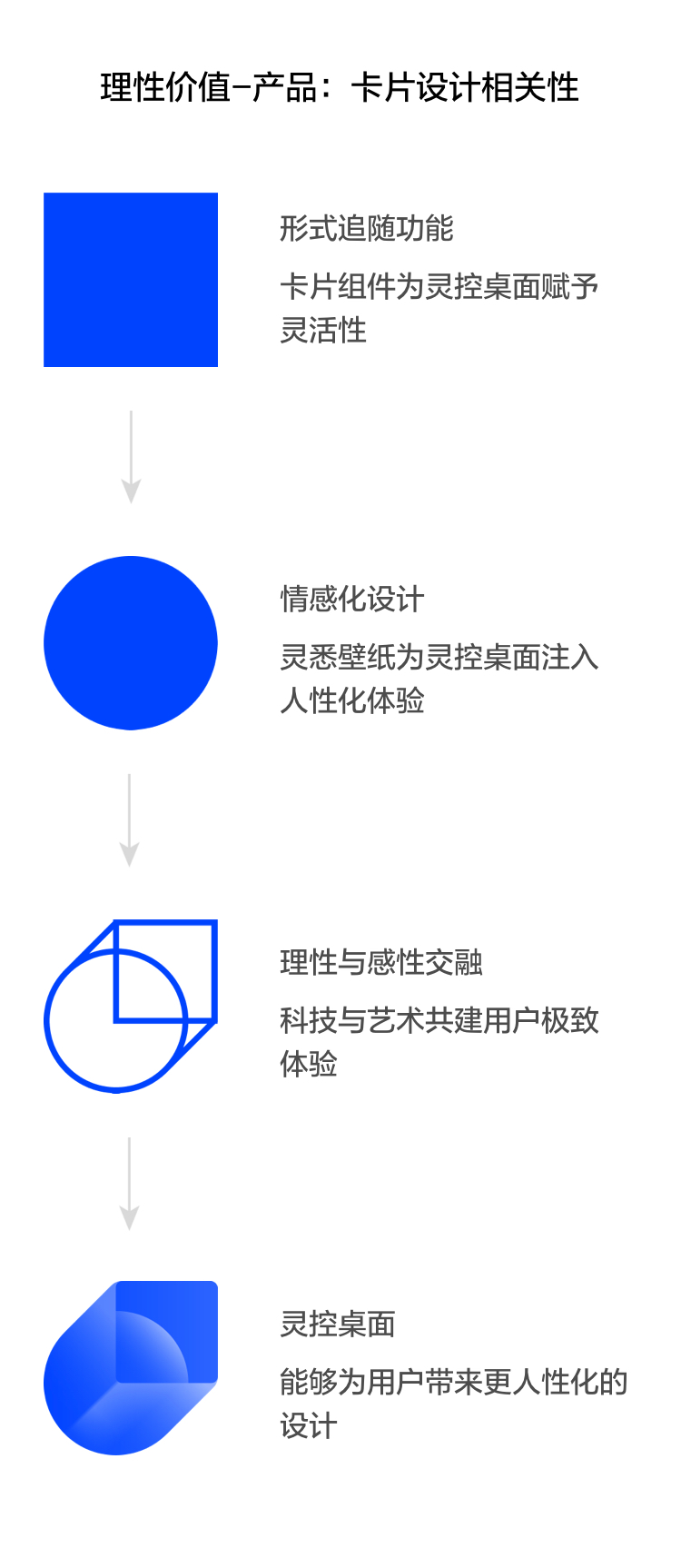 穿梭门类似于瞬移,是虫洞之间的一种应用,logo的整体视觉形似一个空间,从一个空间跨越到另外一个空间。概念图中展示了类似于空间穿越的概念。方形代表科技的,作为用户的入口,圆形代表人文,是更为人性化的体验。用户通过灵控桌面到达更为极致的空间,从而形成以用户为中心的界面生态。