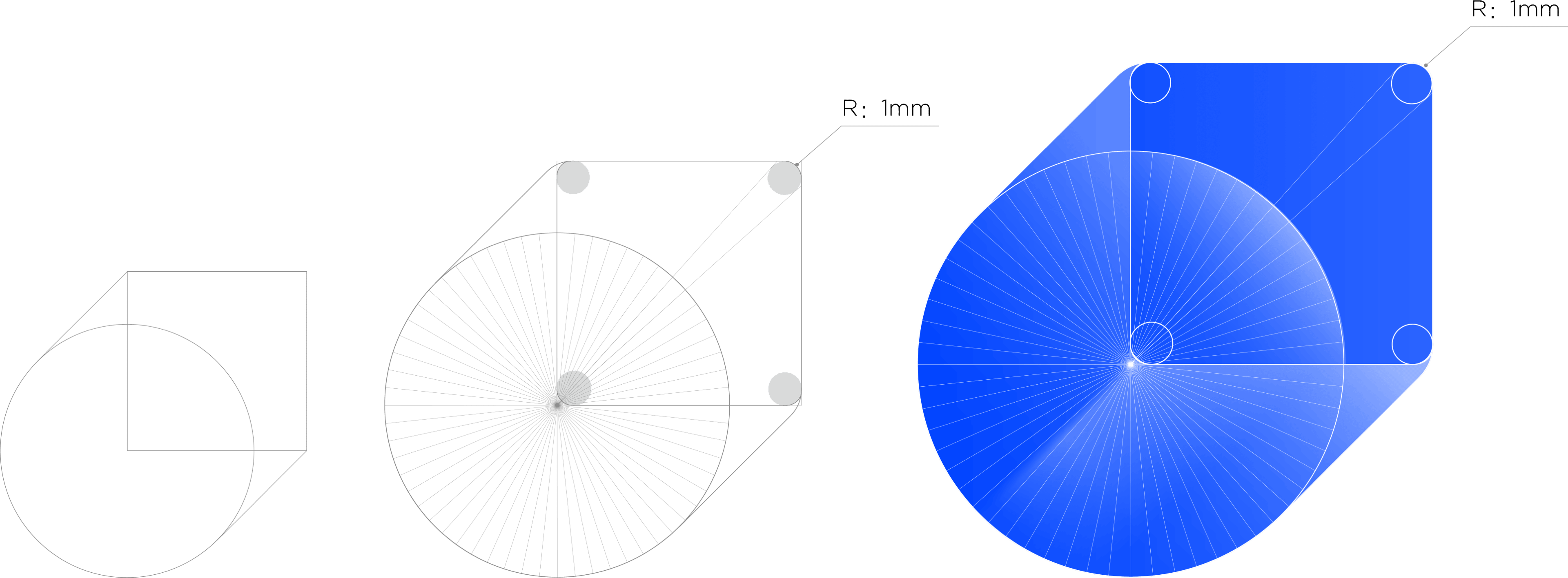 中庸就是恰到好处、适度而合常规的设计。在灵感自然美学中,我们认为万物最美的形态是源于自然,我们将这一理念融入到logo设计当中,为logo找到最为合适的圆角,让标识呈现出舒适的视觉体验。标识的圆角采用了1mm的R角设定,在世间万物中,1最为基础的数字,能够一生二,二生三,三生万物,暗示用户能够在灵控桌面中设置属于自己的界面生态,为灵控桌面带来无尽的体验。