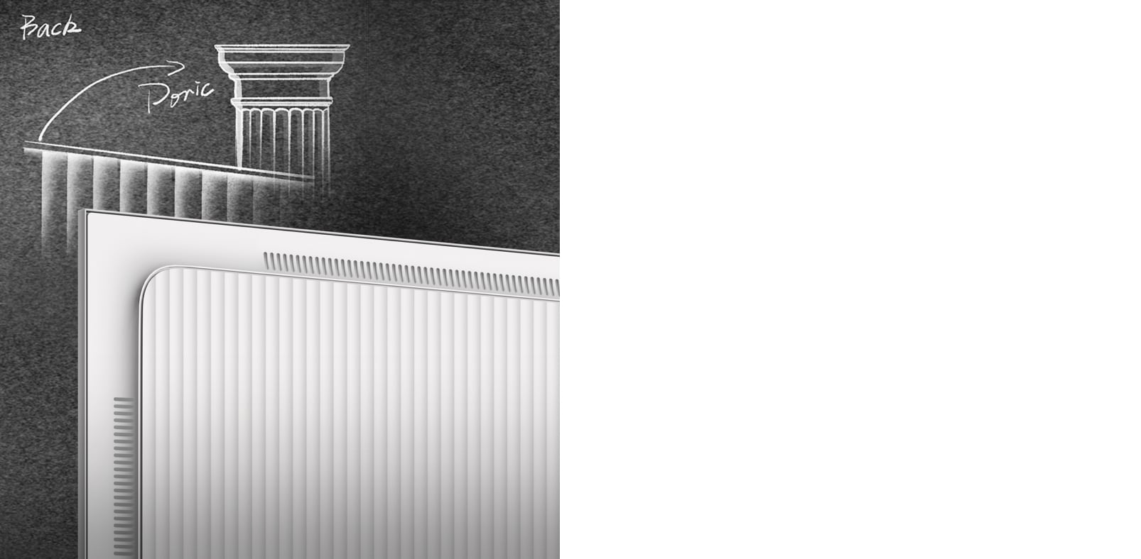 产品背部融合了经典永恒的建筑美学,Doric Order柱式的纹理彼此相融,感知美学内涵与文化的交织。