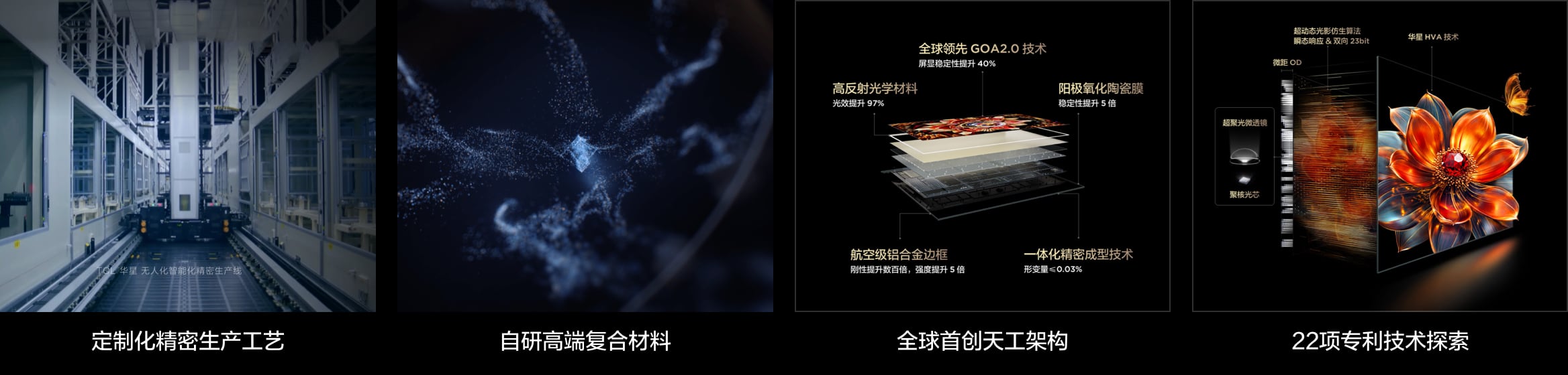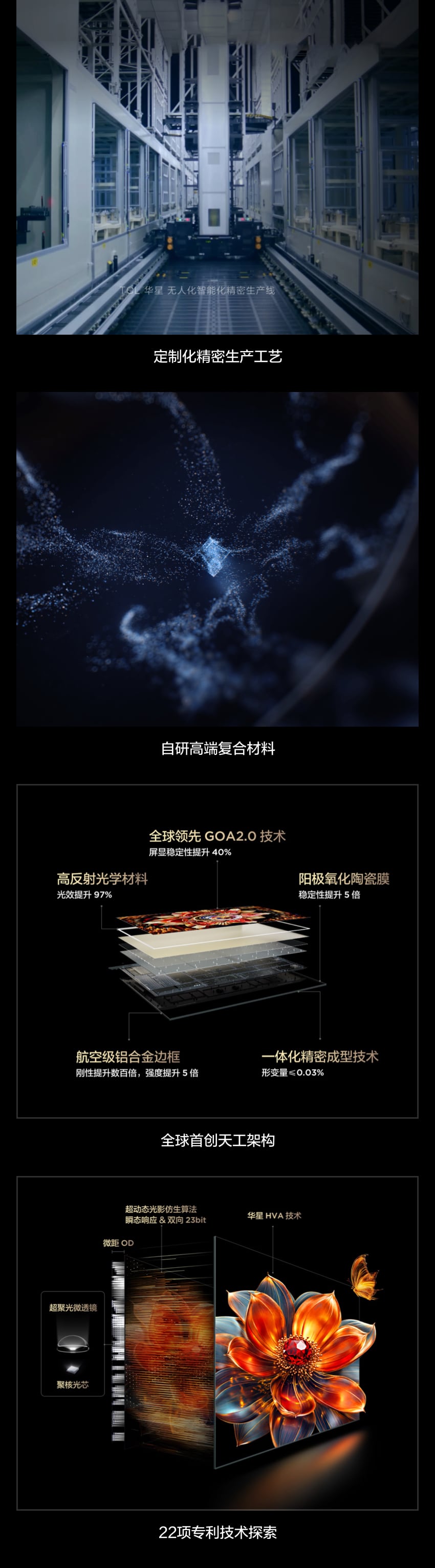 我们每一次看见星空都是那些一场和遥远行星相隔万年的邂逅。看似永恒不变的星辰也会慢慢随时光变化,唯有智慧的光芒可以永恒闪烁在黑夜中。我们在星空纹理 3.0 的发展中依然以灵感自然为美学理念,结合新的视角和数字工具寻找全新时空纹理的变化契机,使其悬浮的星系点动感犹如 Mini LED 在持续闪烁般的智慧与永恒。