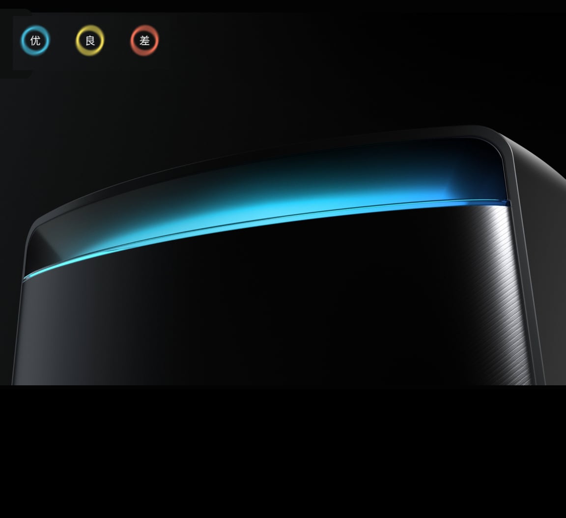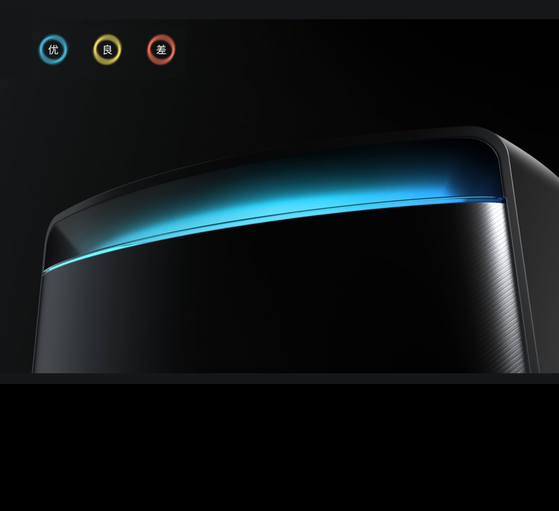 机身顶部的智慧灯光带实时显示空气质量状态,清新空气了然于心。