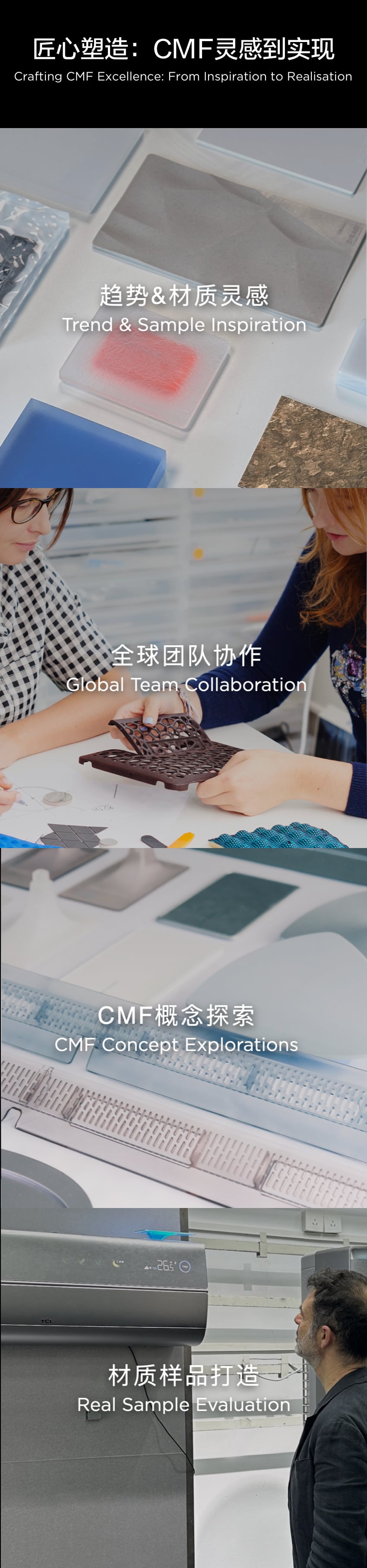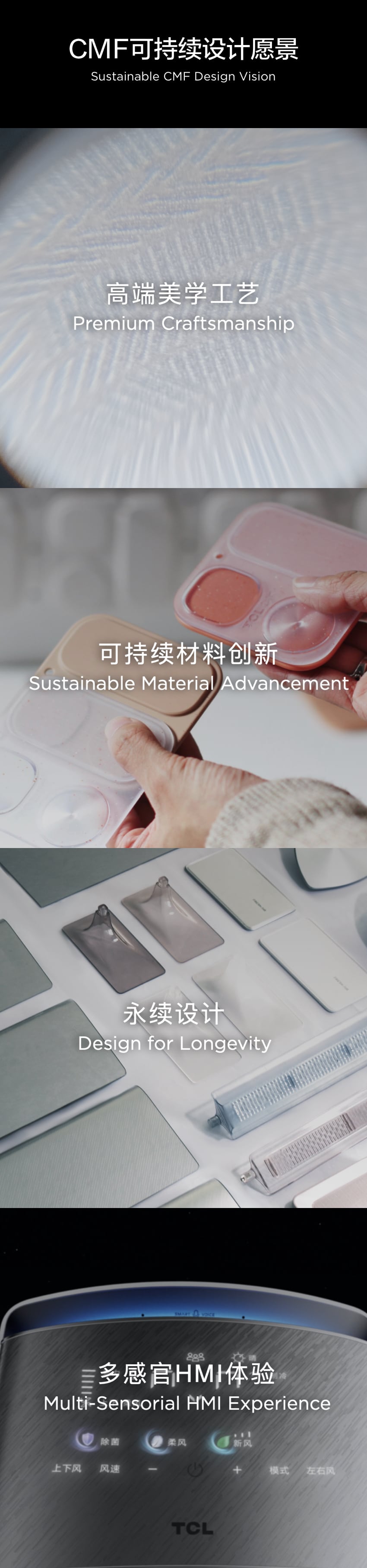 作为新风空调行业的引领者,TCL空调也正推动行业标准进化。TCL空调携手中国家用电器研究院,共同启动了“SHE空调智慧健康绿色评价标准”,从智慧、健康、环境可持续3个维度,推动行业标准进化,将智慧健康从概念到标准化体系落地,让智慧健康标准可量化,让用户更安心。携手Chris Lefteri,共同为TCL 空调的环境可持续愿景打造更多好产品。