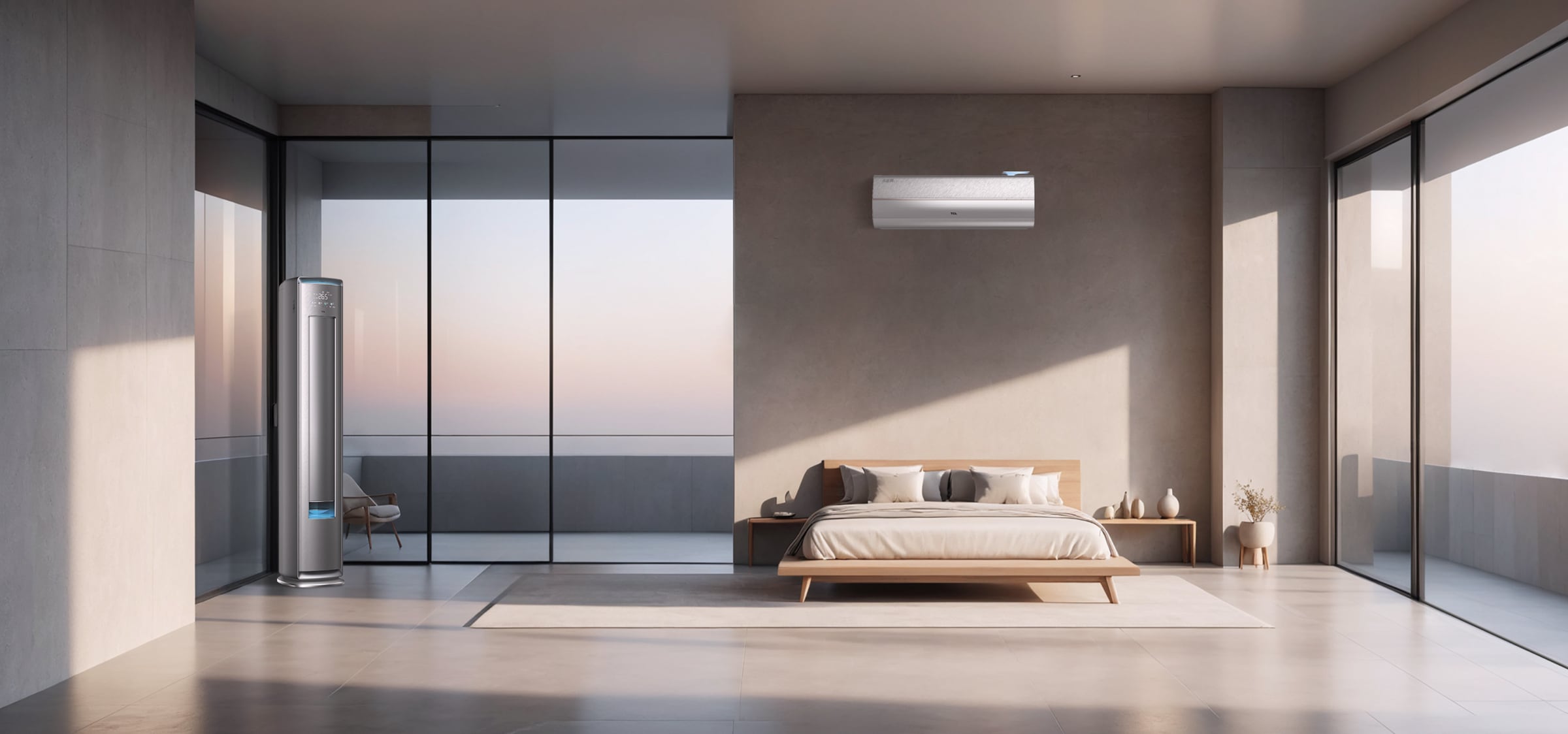 从清醒到入睡,人们一天大约进行23000次呼吸,体温有±1°的差异,空气是人类不可缺少的生存必需品,无需时刻关注和复杂操作,所有的都可以交给TCL 小蓝翼C7系列新风空调,更专业的新风净化,更贴心的睡眠护航,更智能的送风体验,将自然之美融入居家生活,给您智慧健康好空气。
