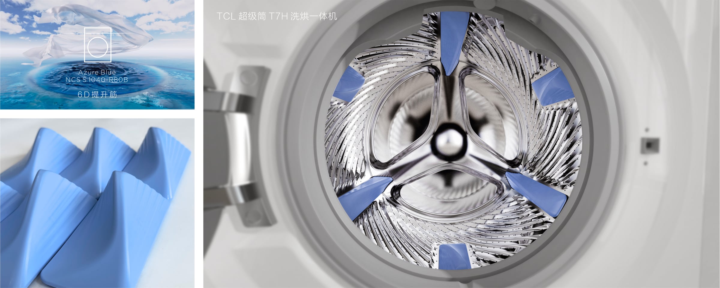 TCL超级筒T7H洗烘一体机,以伯利兹大蓝洞为灵感,通过海平线设计语言,将深海的神秘与宁静注入产品之中。它提升筋的CMF设计采用海浪波纹,不仅提升了使用效率,更将自然美学的精髓融入其中。天青蓝的色彩选择,如同海天一色的壮丽画卷,带来视觉上的无缝连接与和谐。它象征着蓝海与天空的交融,唤起内心的宁静与无限遐想。