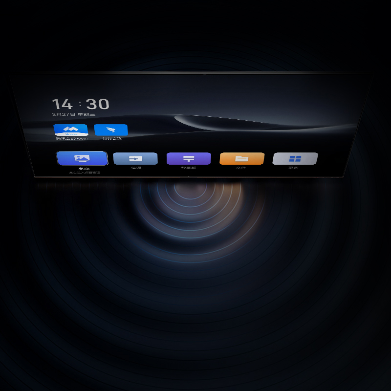 115吋超大尺寸,全面屏纤薄设计,视野更开阔,支持4K超清显示、秒级无线投屏、专业云会议,一机多能,专为大场面而生,轻松满足大型专业会议、汇报演讲、多人培训、大空间展示、迎宾接待等需求。