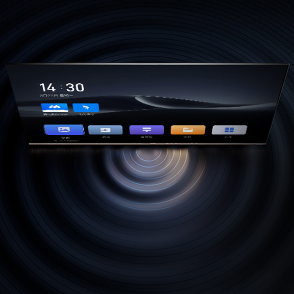 内置腾讯会议Rooms专属版、钉钉会议,无需连接电脑、无需投屏即可在大屏端开启视频会议,更便捷、更清晰、 更稳定;会议专属拾音算法,原声再现;专属遥控器一键快速入会,可开启摄像头、麦克风、文 件上/下翻页,便捷高效。