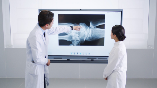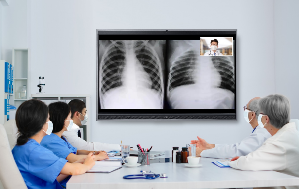 在远程会诊中,TCL智能交互平板通过远程视频影像、反向操控等功能,实现在视频会议的同时共同查看病历资料、医学报告等,保障专家与患者及时进行流畅、强互动的沟通。