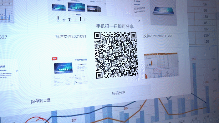 无线投屏功能,项目信息立刻显示在大屏上,还能对项目进行重点圈选、批注解读,扫码保存分享,快速与远程端伙伴共享评审方案。