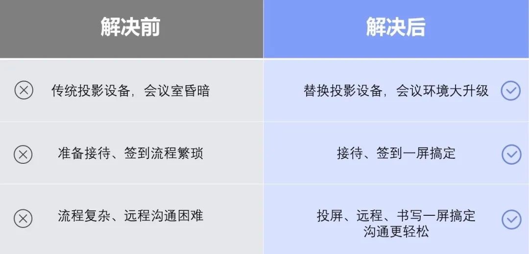 传统会议室老旧,设备繁多、线路杂乱,影响公司整体形象与观感。