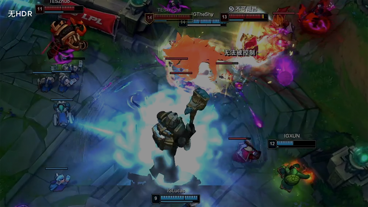 全生态 HDR,不论是高亮场景画面,还是黑暗场景画面,游戏画面中的细节标记都能尽收眼底,战与退尽在掌控之中。