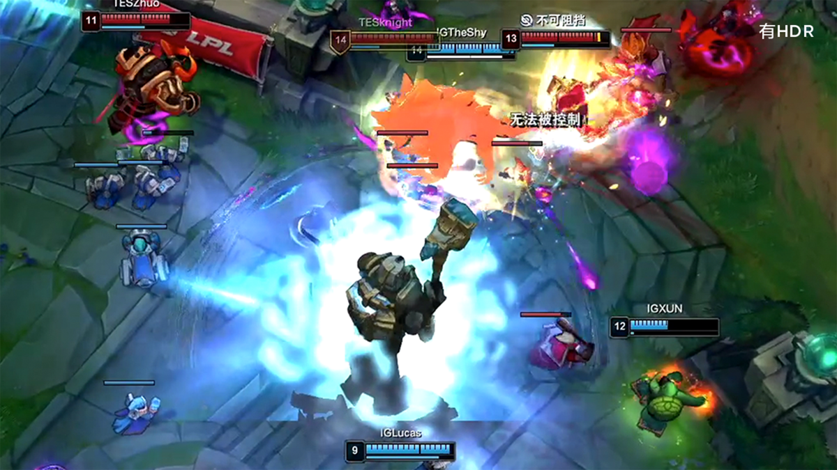 Q 画质引擎从精锐色域控制、高亮度精控、智能局域控光、四维场景优化,四个维度对画质进行优化,还原峡谷精彩对决。