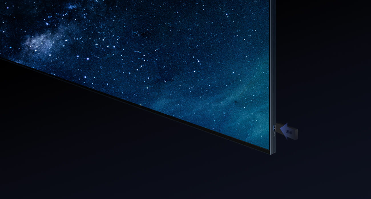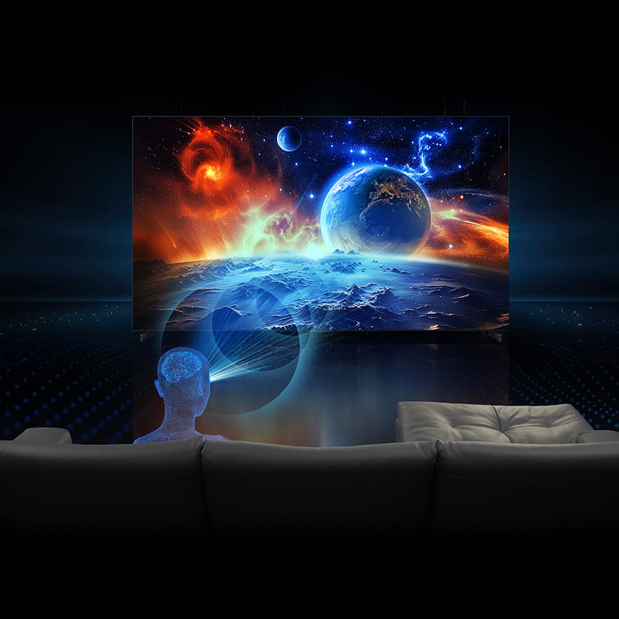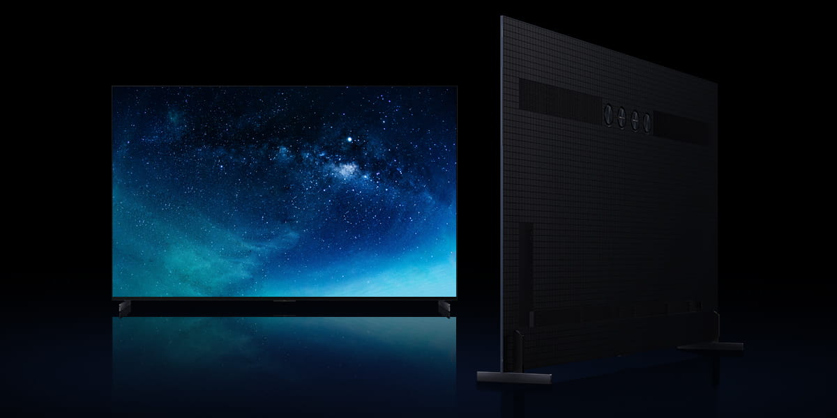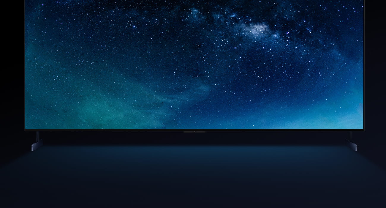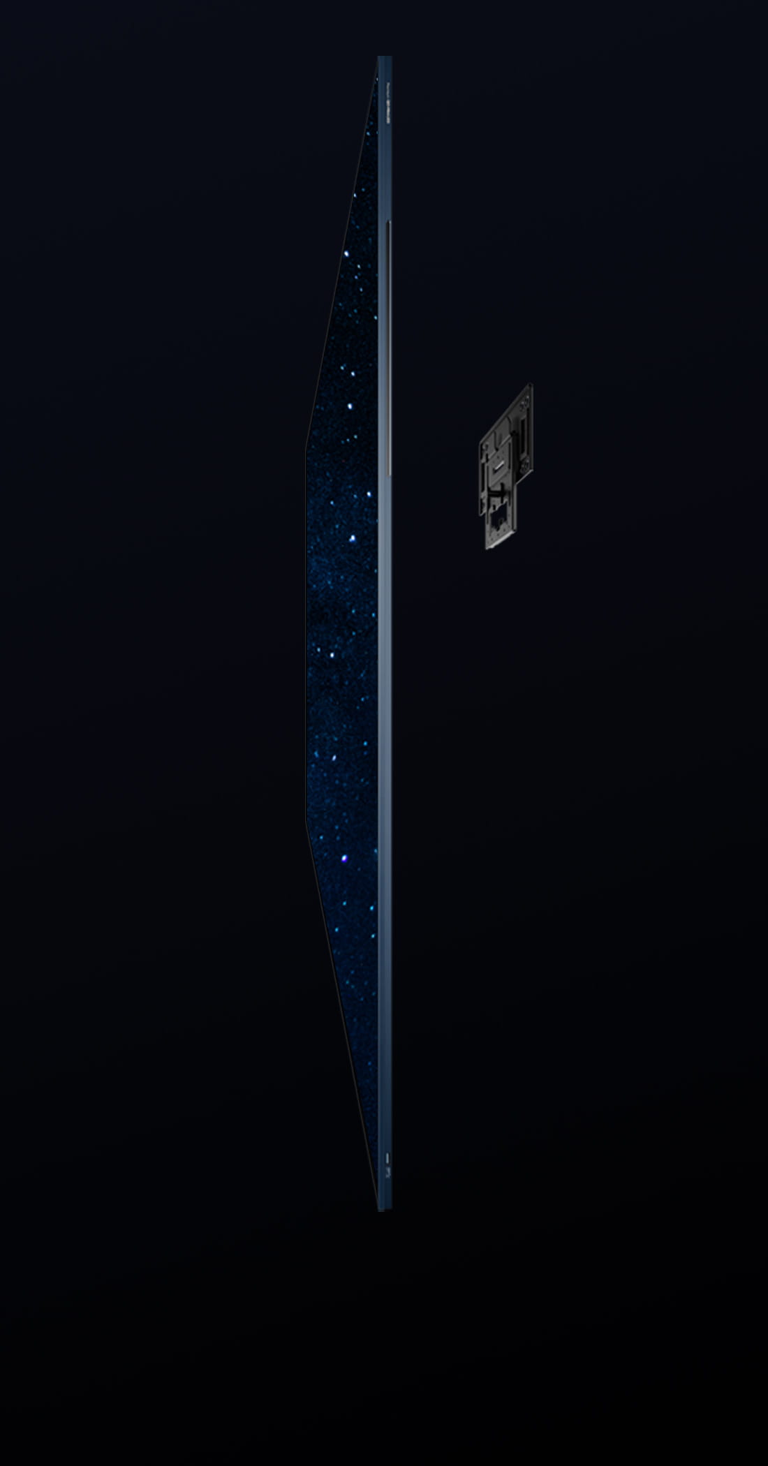 纯平一体|无缝贴墙|金属全面屏|银河影蓝|引力星盘低音设计| Mini LED 星空纹理