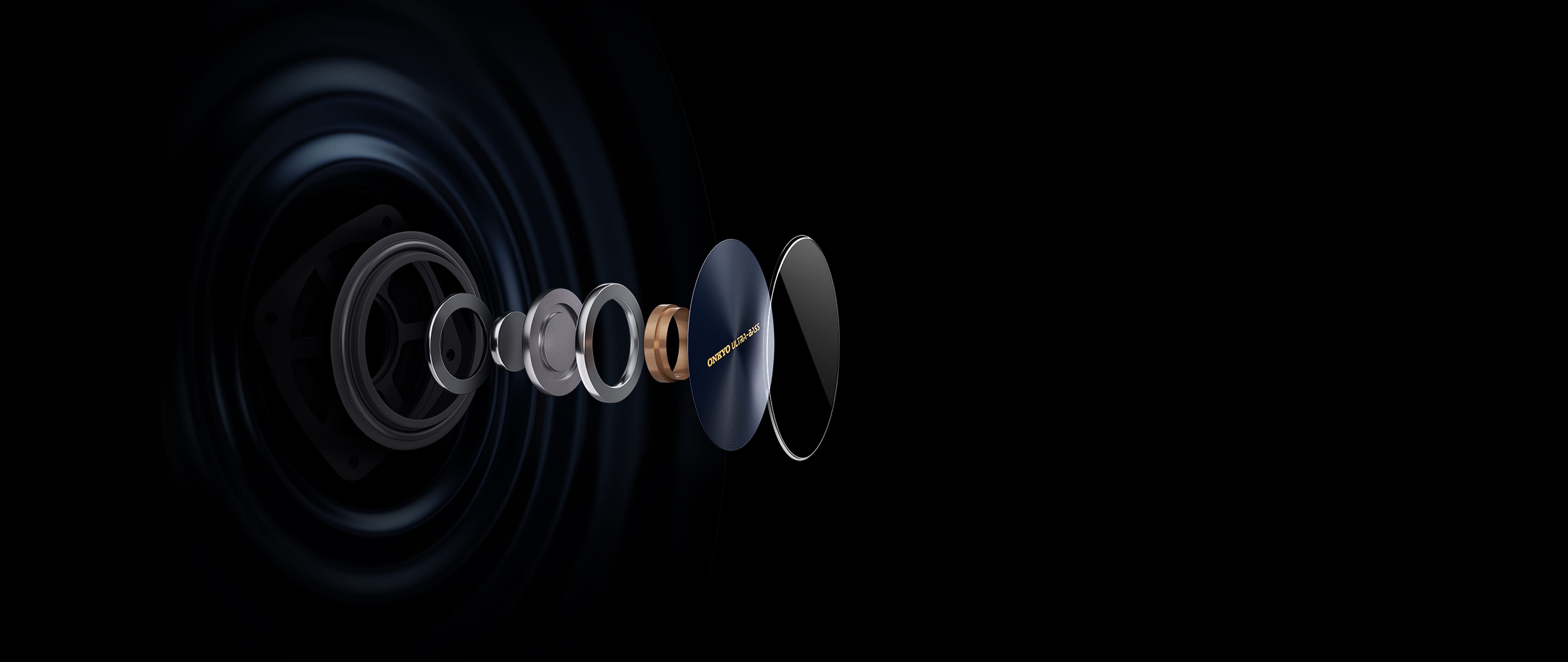 星盘镜面采用 IML 高端工艺,光束的交辉相映,也是经典 Hi-Fi 原声的体现,低音的起伏犹如引力般聚向流动,铿锵有力