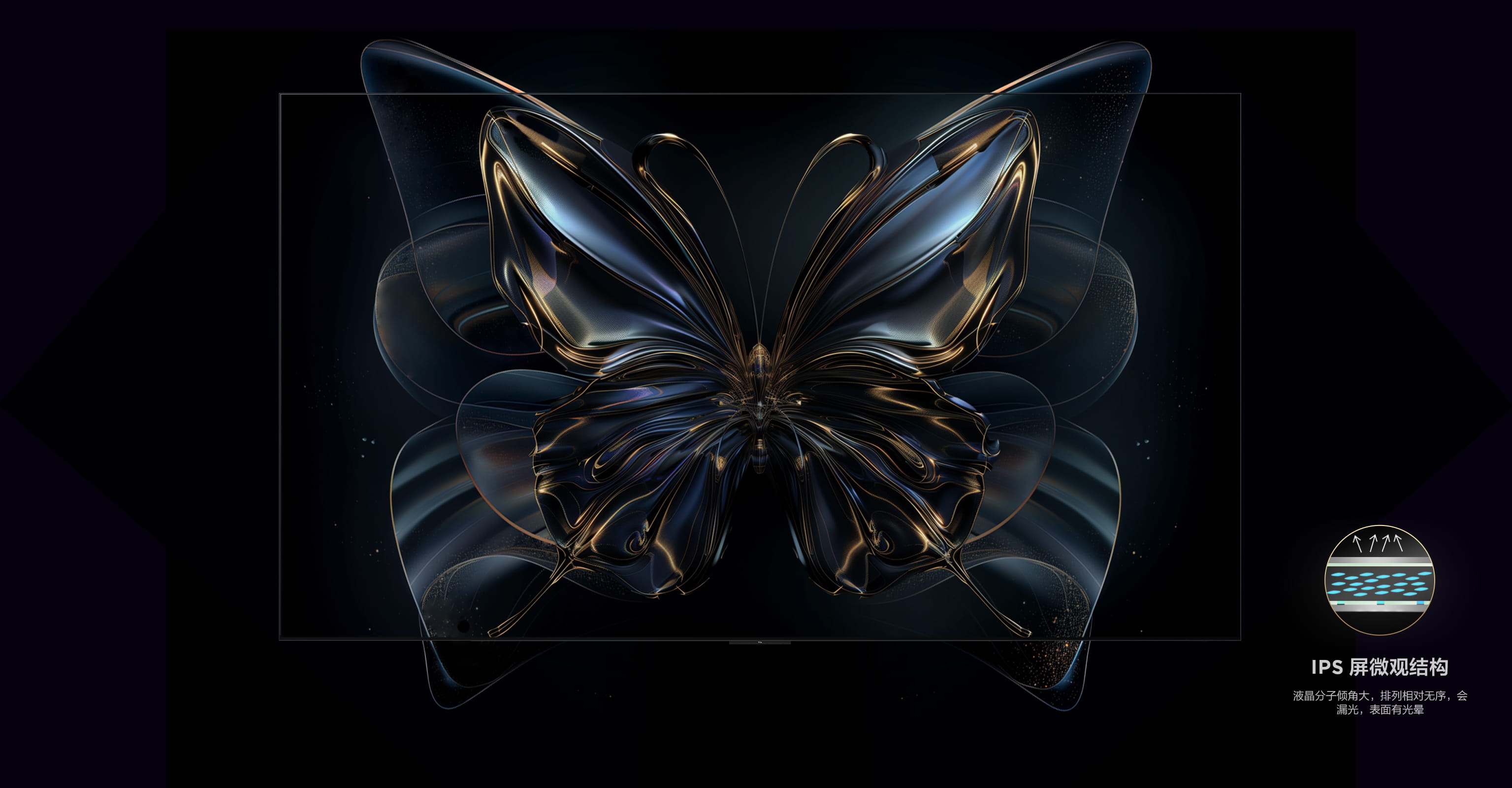 液晶层采用纳米级仿生科技,在液晶分子上增加聚酰亚胺,形成蝶翼状微结构,精准控制通过液晶层的光线,大幅提升对比度;同时搭载纳米级低反膜,降低屏幕反光,呈现的画面更通透,细节更清晰。