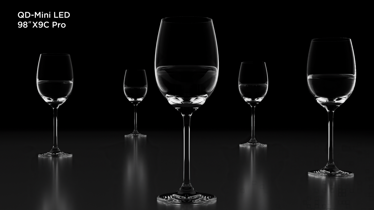没有亮度的保证,对比度没有任何意义,好的对比度不仅要黑得下去,也要亮得起来。一张 6 个杯子的图片,在 98"X9C Pro 上可以轻松看到 6 个杯子,而在 OLED 上仅能看到了个杯子。