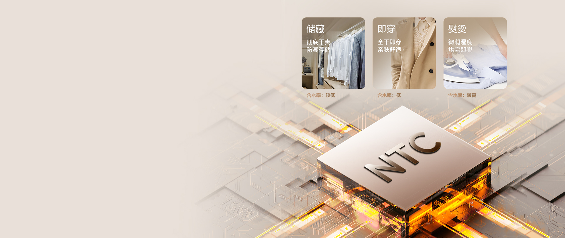全域微暖柔风吹抚衣物,配合Humidity Sensor及NTC智