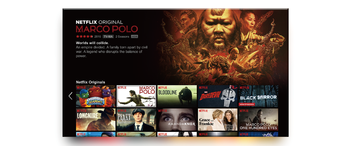 Netflix je jedním z největších internetových televizních kanálů na světě s nabídkou programů, ve které si každý najde to své. Sledujte programy naplánované přímo pro vás, včetně originálních seriálů Netflix a oceňovaných filmů a dokumentů.