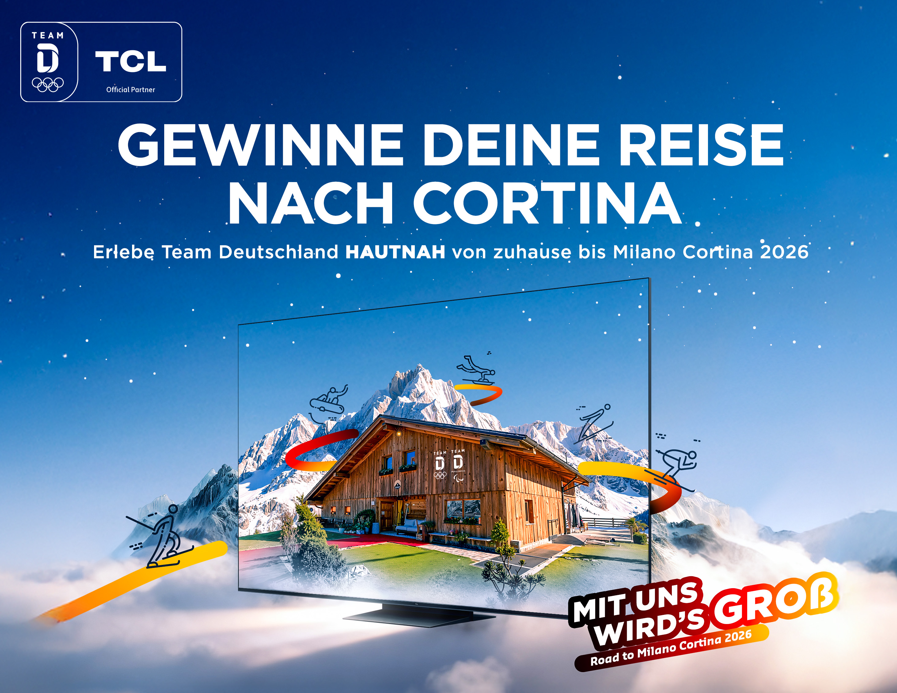 Wer zwischen dem 29. Oktober 2025 und dem 18. Januar 2026 einen TCL TV, eine Soundbar oder einen Monitor erwirbt, hat die Chance, eine Reise nach Cortina zu gewinnen und Team Deutschland hautnah zu erleben. Die Gewinnerinnen und Gewinner erleben dort die Spiele hautnah, treffen TeamD-Athletinnen und -Athleten und feiern gemeinsam die olympische Stimmung in der Team Deutschland Fan Zone.