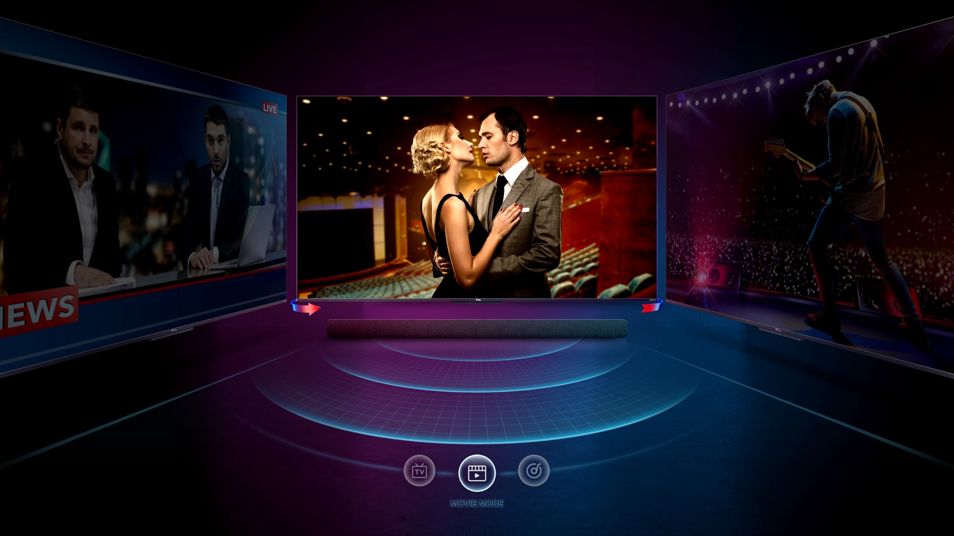 For at få mest muligt ud af din soundbar og få den bedste oplevelse har vi inkluderet specielle lydtilstande. På denne måde får du altid den bedst mulige lydoplevelse, uanset om du bare ser TV, vil fordybes i en fantastisk film eller nyde din yndlingsmusik på din soundbar.