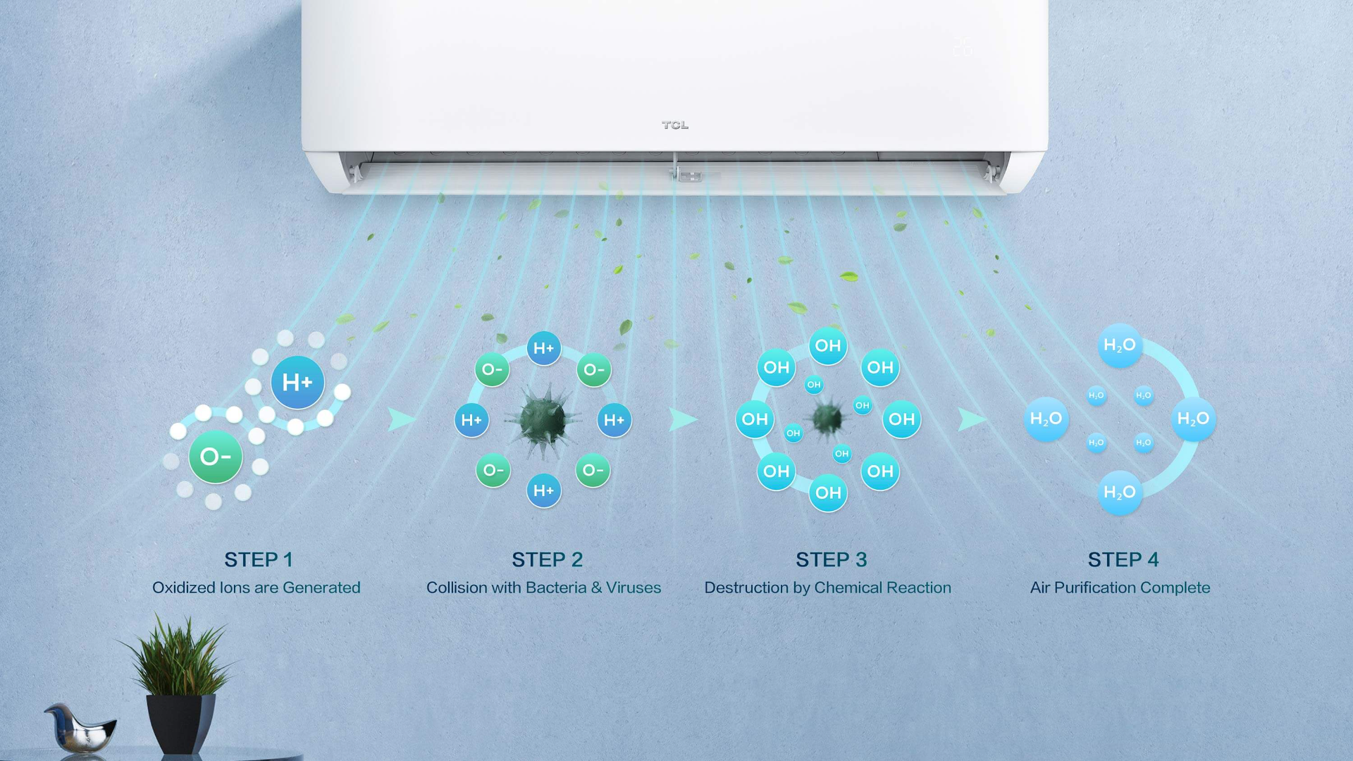 Los iones oxidados se difunden en el aire y chocan con bacterias y virus. Disfrute de un rendimiento tranquilo, clínicamente probado para inactivar las estructuras de proteínas y contrarrestar las toxinas en el aire.