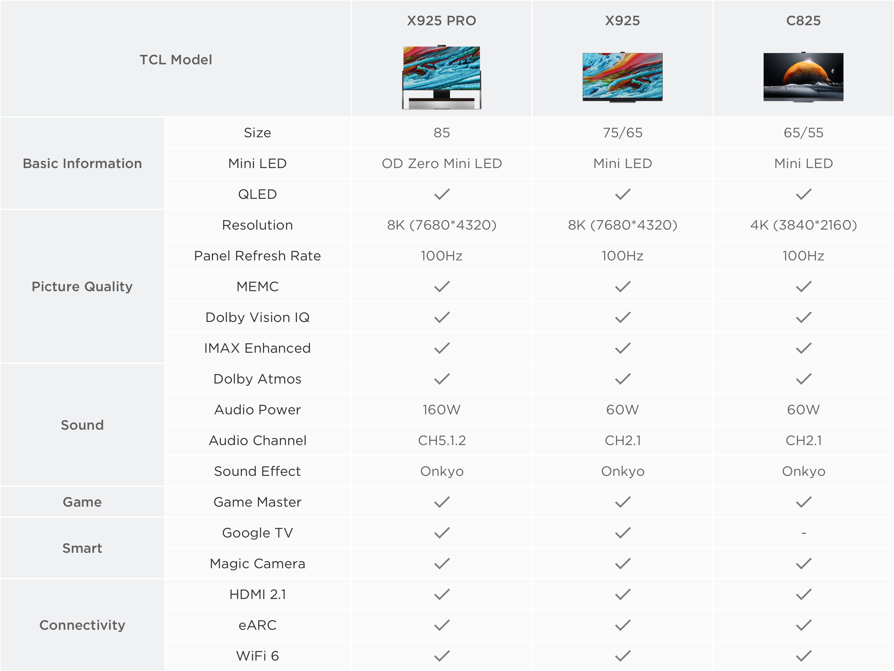 To keep up with the pack, TCL is launching its third-generation Mini LED backlighting, dubbed OD Zero or Optical Depth Zero for X925 PRO, which refers to the distance between the backlight and LCD display layer in TVs featuring this technology. In another industry first for TCL, that distance is zero. Enjoy increased contrast ratios, better blacks and a boost to picture quality no matter what you're watching.