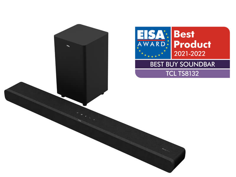 La barra de sonido TCL TS8132 es la ganadora en la categoría “Mejor Compra de Barras de Sonido 2021-22” de los premios EISA de este año. Esta barra de sonido, mediante una serie de controladores que presentan un canal central y dos unidades ascendentes, además de un subwoofer inalámbrico, crea un sonido inmersivo de 3.1.2 canales a partir de un diseño discreto. Ideal para una configuración basada en la televisión, el manejo de los diálogos, la separación de los efectos y el detalle de la TS8132 son puntos fuertes, así como la sensación de escala que aporta su profunda respuesta de bajos. Esta barra de sonido es compatible con Dolby Atmos, y el contenido estéreo se puede mezclar con el modo surround de la barra de sonido. Además, según el jurado de los premios EISA, “las especificaciones también son adecuadas para un modelo más caro: los puertos HDMI dobles, USB y audio digital óptico facilitan la conexión de diversas fuentes, mientras que Chromecast (con control de voz de Google Assistant), Apple AirPlay y Bluetooth ofrecen un gran potencial inalámbrico”.