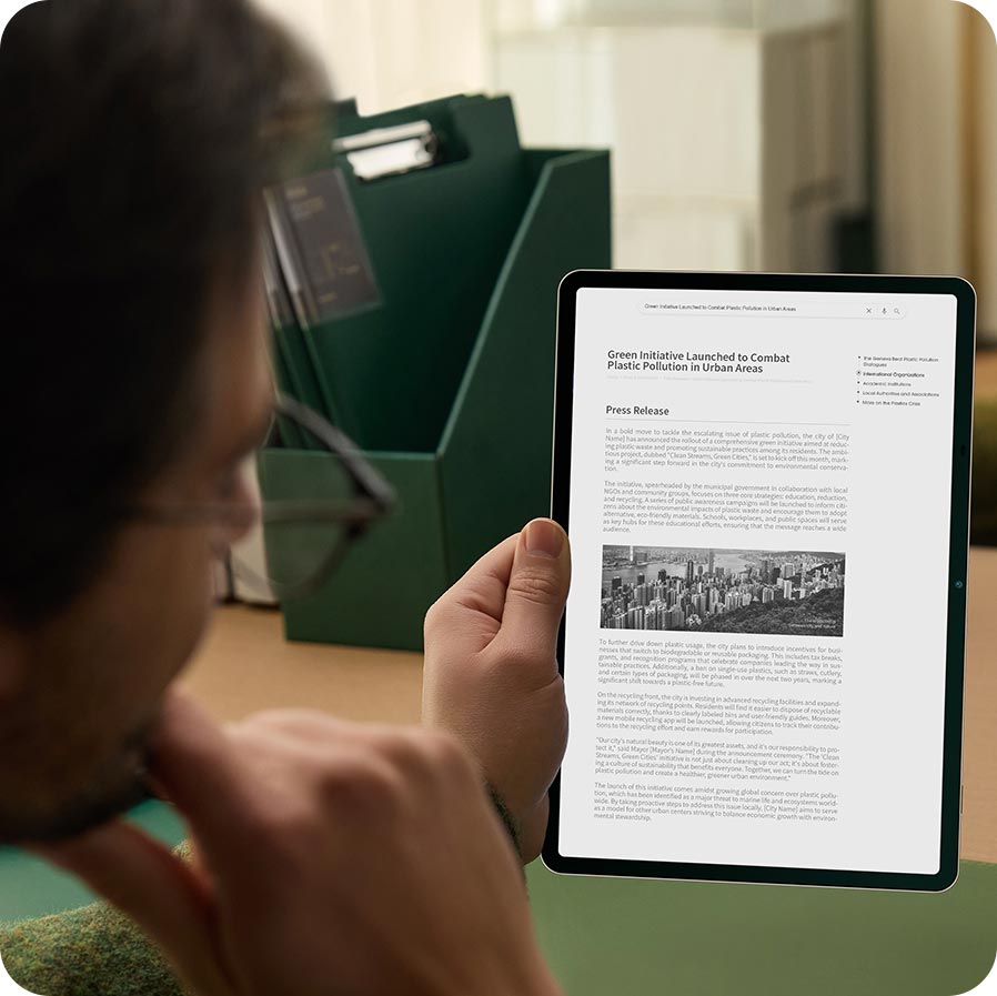 Reconocida por su tecnología AG, la superficie mate NXTPAPER, que no deja huellas dactilares, es antirreflectante desde cualquier ángulo. NXTPAPER 4.0 utiliza litografía de nanomatriz de 60 millones de niveles en su proceso de grabado, lo cual mejora en gran medida la nitidez de la pantalla. Tanto si lees texto pequeño en un documento como si ves contenidos multimedia de alta resolución, la pantalla presenta cada contorno de texto y cada detalle de la imagen con una nitidez inigualable.