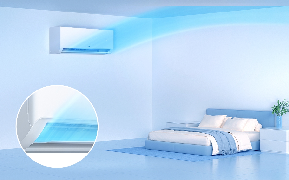 Cool Air delivers along the ceiling, avoiding direct blasts.