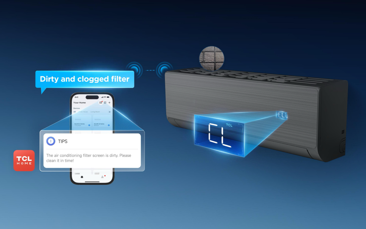 Built to remind you when it's time to clean the filter automatically. The reminder displays on the indoor unit or in the TCL Home App.