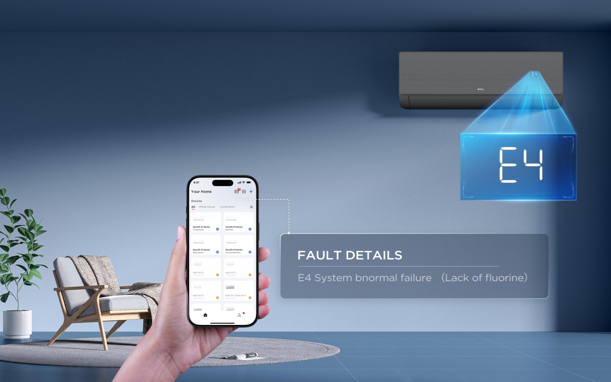 It proactively identifies potential danger, including refrigerant leaks, and notifies you with a code displayed on the control panel. Real-time notifications will also be sent in TCL Home App.