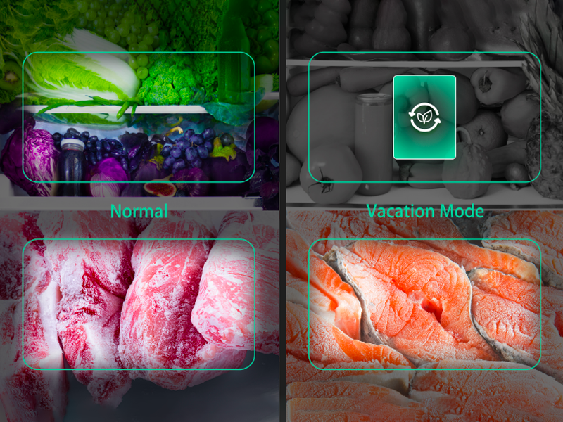 Vacation Mode allows you to interrupt the operation of the refrigerator compartment while maintaining that of the freezer. This option is particularly useful and economical in case of prolonged absence.