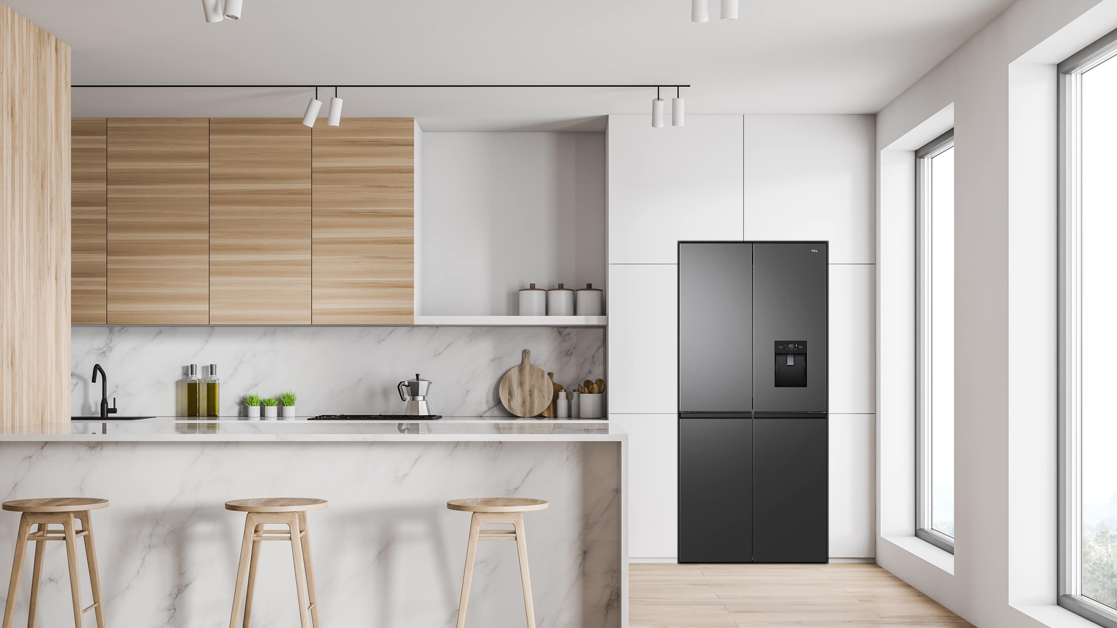 TCL Inverter compressor runs at varying speeds to ensure precise temperature management and keep the food fresher for longer. By avoiding successive restarts, it is also more silent, durable and economic in energy consumption.