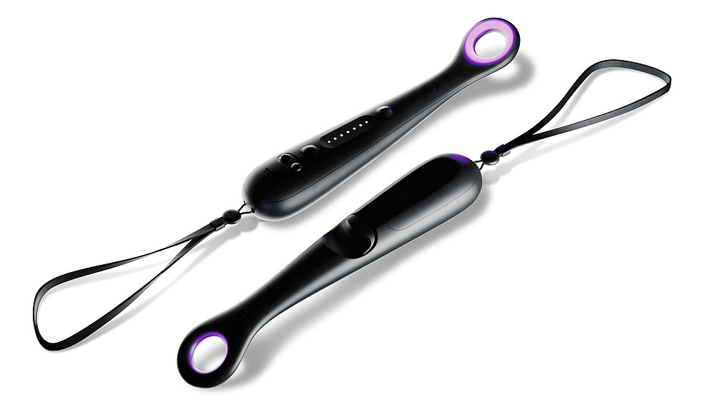 Zoom Remote was developed specifically with children in mind. Featuring a fascinating illuminated ring, the device responds like a magic wand to voice commands and natural gestures. It can be used to point, pan, swipe and zoom, as if the television were a huge, interactive touchscreen. This allows children to interact with a multi-tiered navigation system that quickly reduces hundreds of available options down to the most relevant content.