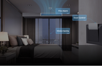 The AC can be turned on/off through door or window open or shut, or the fire alarm system for emergency control.