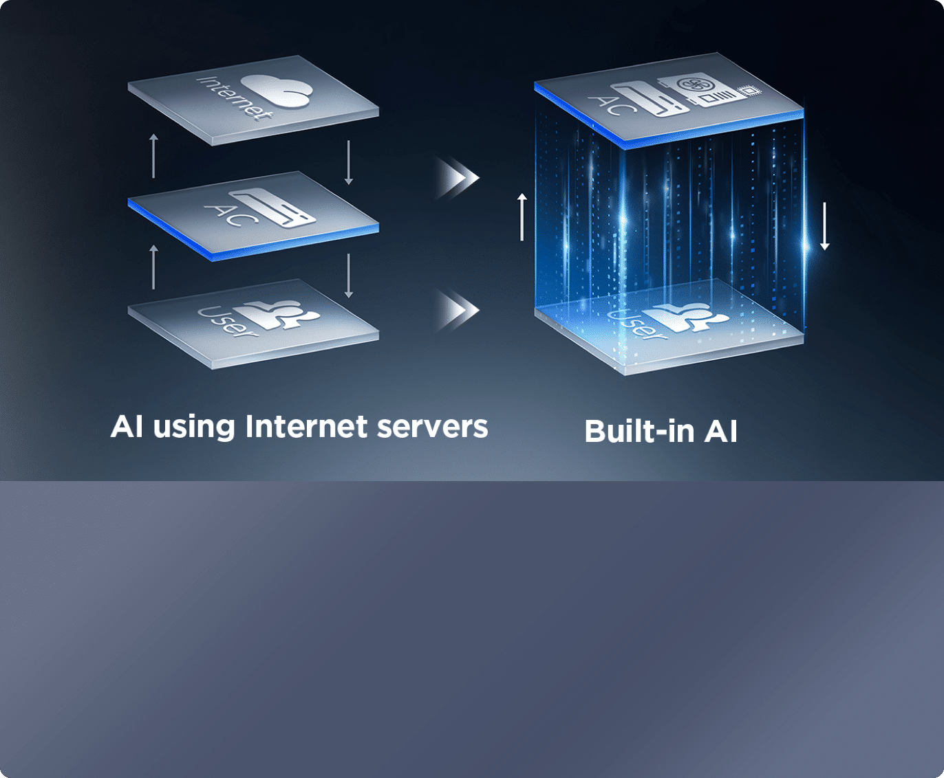 TCL AC is equipped with T-AI, an advanced AI algorithm engineered to provide ultimate energy management for air conditioners. Featuring intelligent Room Temperature Sensing and real-time AI Data Analysis, T-AI adapts seamlessly to any environment-even without internet connectivity. With its predictive AI capabilities, T-AI ensures precise temperature control, optimizes performance, and strikes the perfect balance between comfort and efficiency—delivering up to 37%+ extra energy saving.