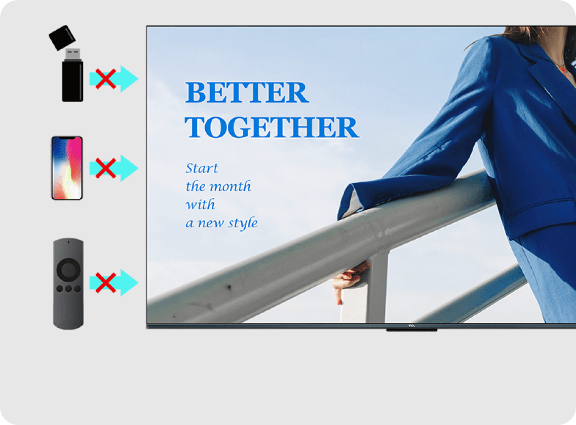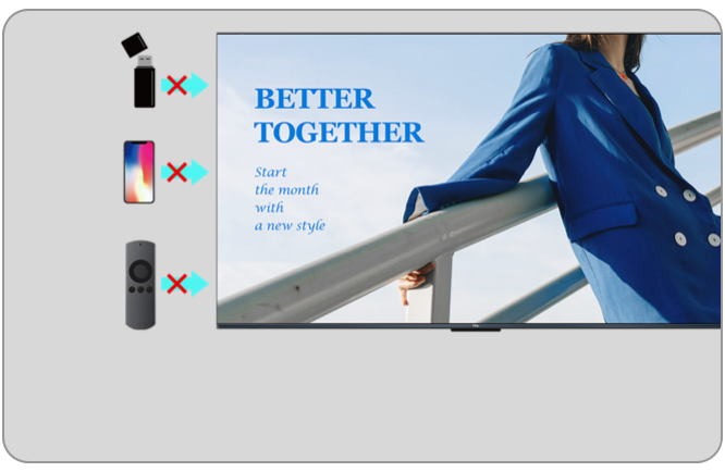 TCL EShow enables real-time remote monitoring and security control. USB, Bluetooth, Wi-Fi can be disabled to guarantee security of device. Support real-time monitoring of playback content.