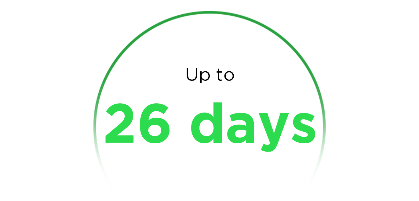 2. Battery data based on results from internal lab tests. Actual battery life varies by personal usage.