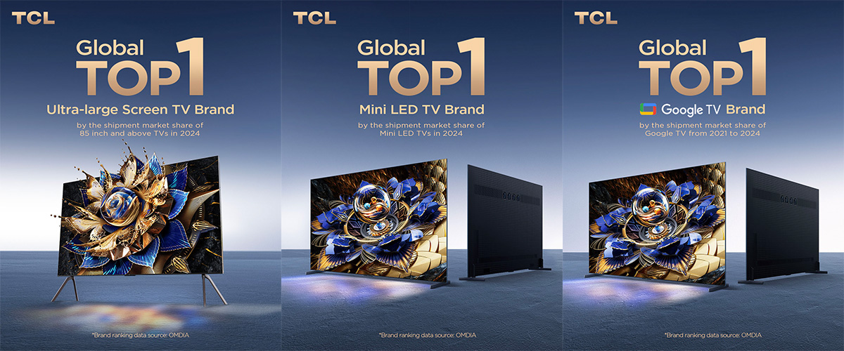 TCL Electronics, a leading consumer electronics brand and the world’s top 2 TV brand, has been recognized with three Global TOP 1 rankings by the market research company Omdia, highlighting its leadership in ultra-large TVs, Mini LED TVs, and Google TVs.