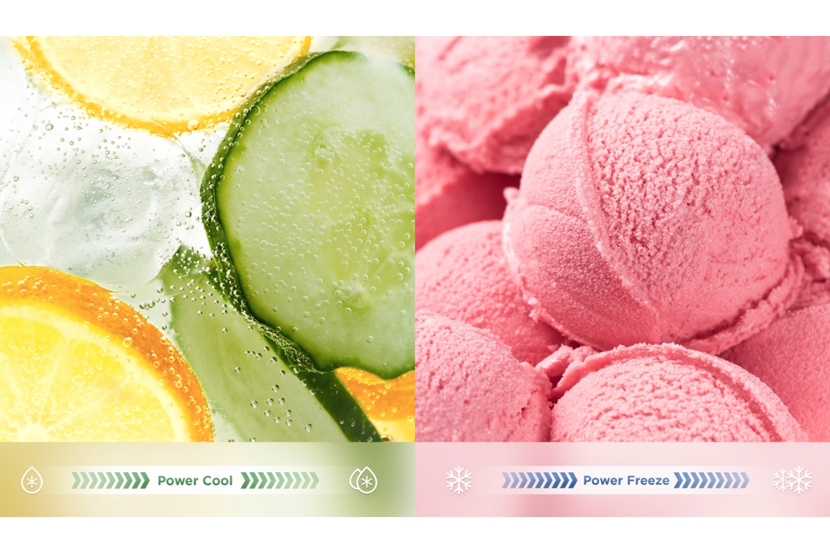 Think of a hot summer day when you are hot and thirsty for an ice-cold drink. How to make that happen? That’s where the Power Cool feature steps in! You can quickly cool down your favorite drinks in the fridge by activating the function. Power Freeze, on the other hand, is used in the freezer compartment. It is ideal for freezing or firming up frozen food and making ice.