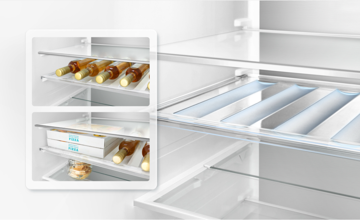 Thanks to the stable recessed hinges, bottom heat dissipation, and TCL 4th generation of microcellular foaming technology, TCL free built-in refrigerator can be easily placed into the cabinet, with only less than 1cm of space in case there is deformation for the cabinet walls, more flexible and suitable for multiple decoration scenarios.