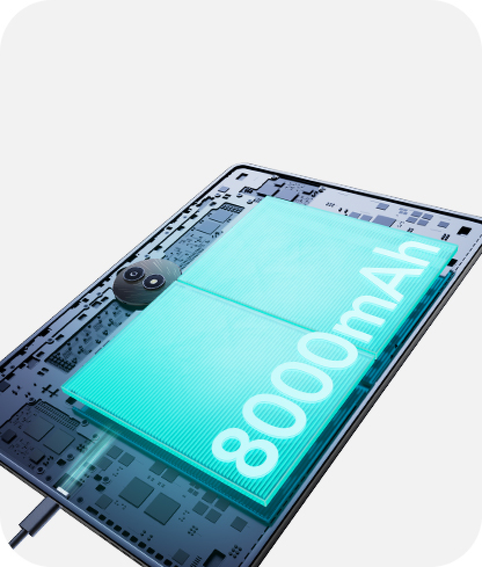 Do what you need and love all day long. A serious 8000mAh battery will last up to 60 days in standby mode. Power up quickly with 33W PD fast charging, while 1.5A reverse charging lets your tablet work as a power bank as well.