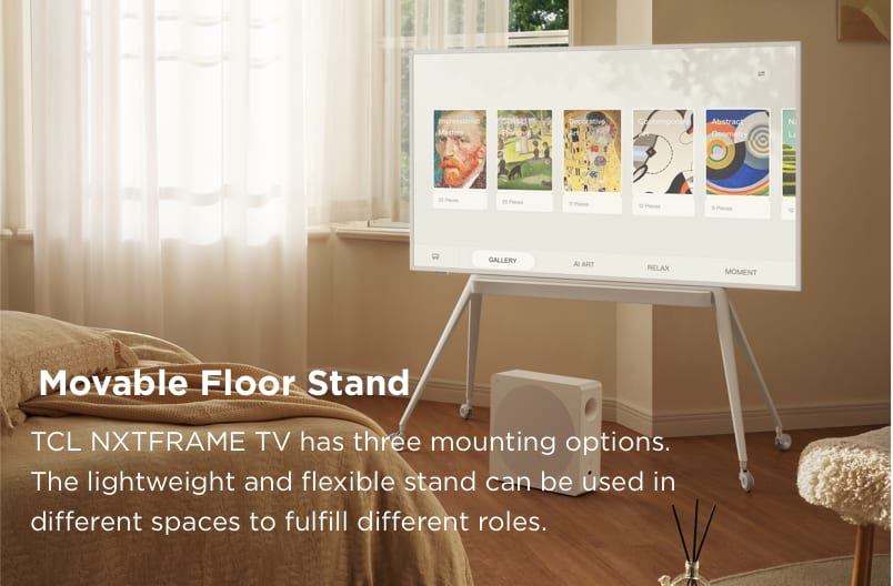 TCL TV has three mounting options. The lightweight and flexible stand can be used in different spaces to fulfill different roles.