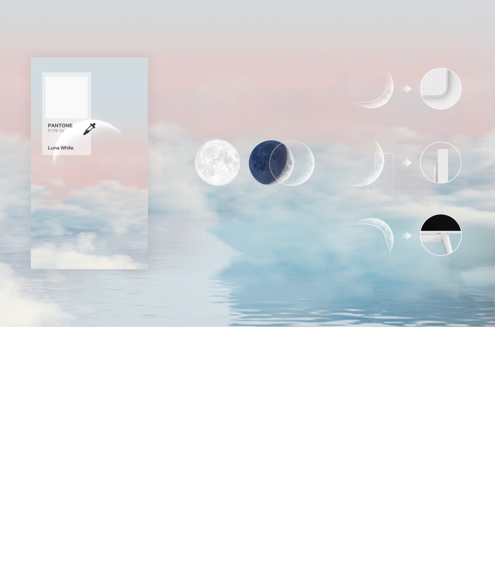 We have captured the elegant arc of the moon's movement in nature, evoking a visual bond with nature, offering a comfortable touch and a soft visual experience under light. The entire product series adopts the warm white tones of a crescent moon at dusk, narrating the harmony of all things and creating a warm atmosphere.