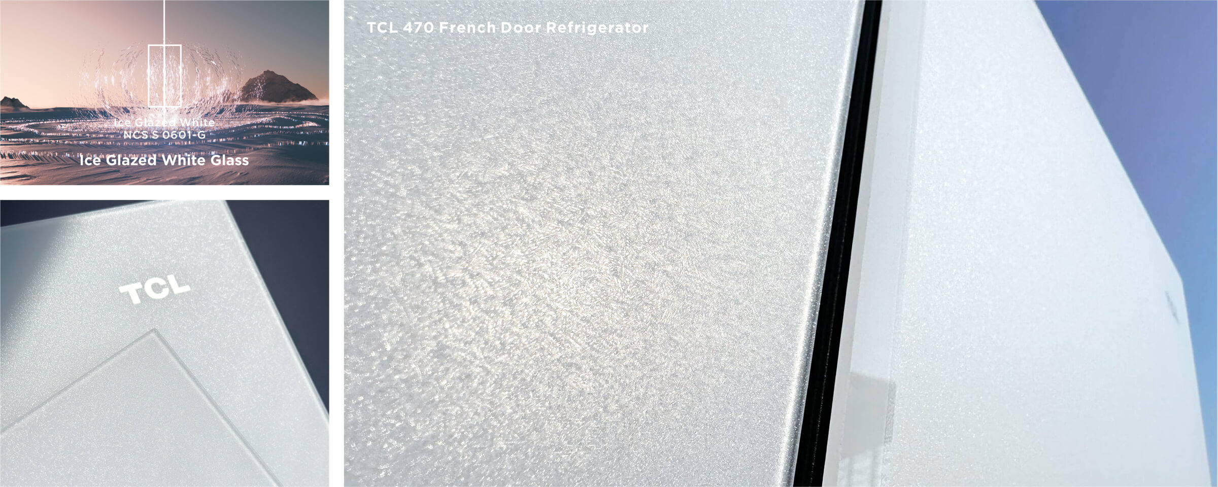 The design of the TCL 470 French Door Refrigerator draws inspiration from the beauty of ice crystals in winter. The high-temperature firing process results in a delicate ice crystal texture and light effects on the ice-glazed panel. This design offers a sense of lightness and tranquility, evoking memories of childhood winter experiences and awakening a sense of warmth and nostalgia.