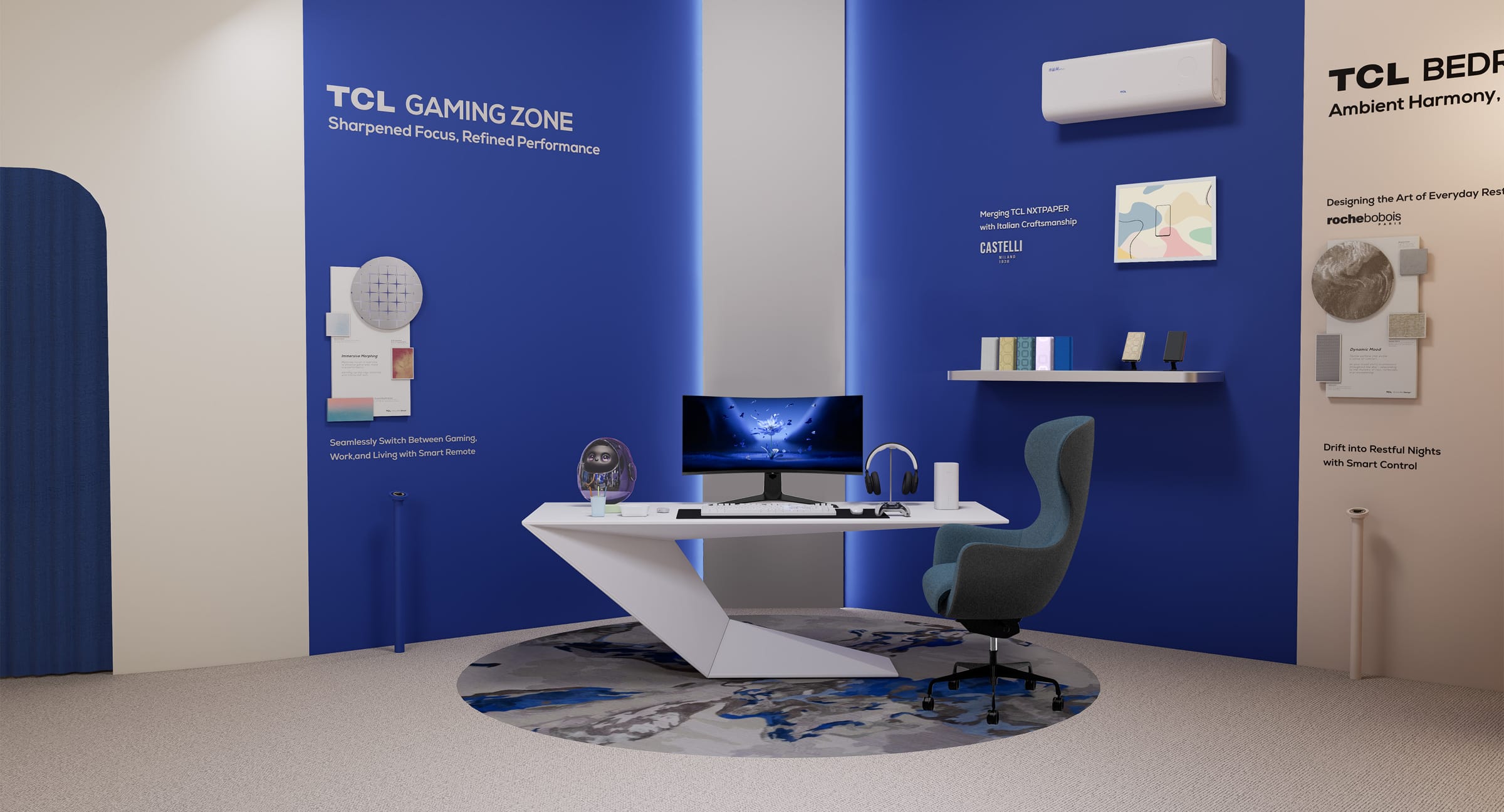 Comfort is tuned by the TCL FreshIN 3.0 Air Conditioner, designed for both work and play. At the same time, the Immersive Morphing CMF panel by Chris Lefteri Design adds an interactive layer, its heat-activated elements shifting with energy and intensity to mirror the dynamic rhythm of gaming. Finally, TCL ECORA™ stationery introduces a quiet discipline, grounding performance with mindful materiality.