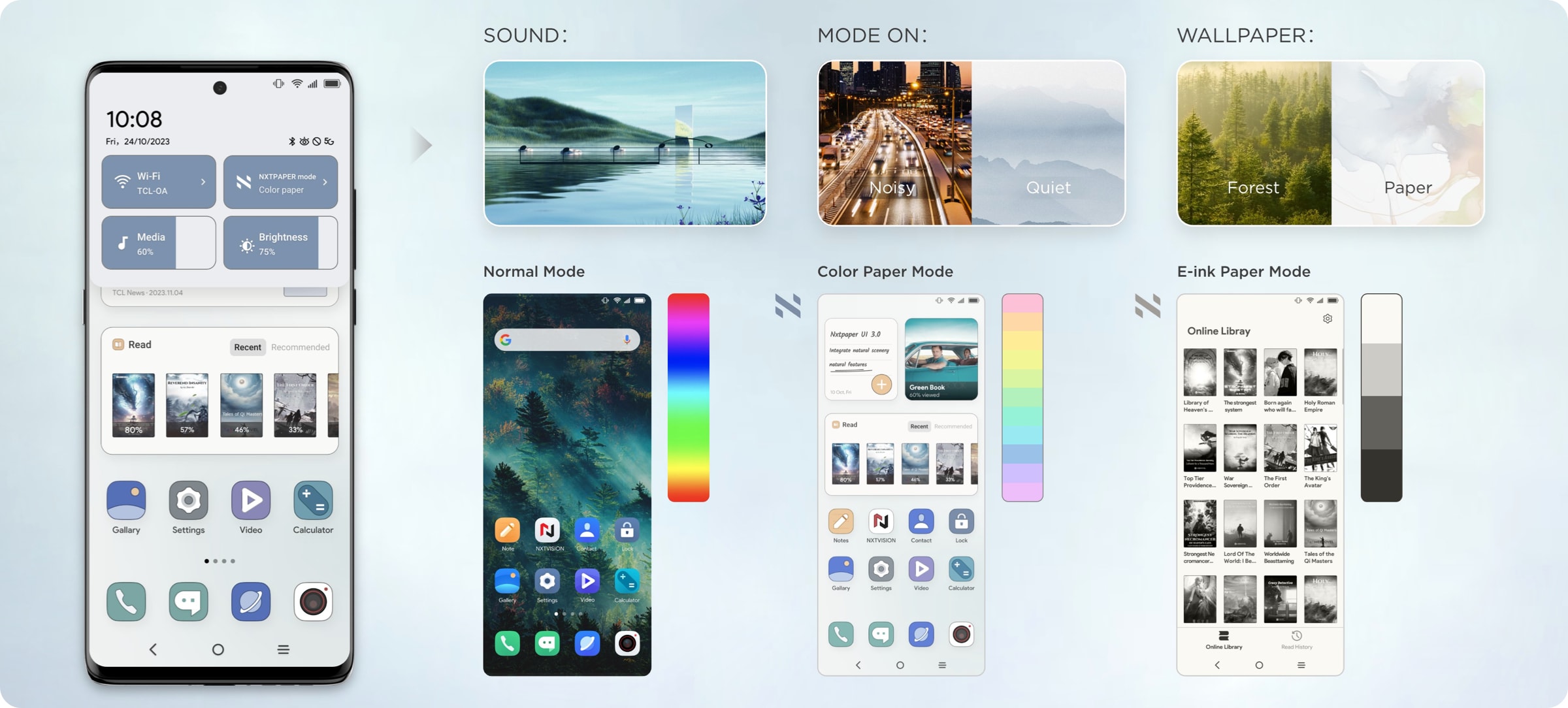 TCL NXTPAPER is inspired by natural aesthetics, allowing users to effortlessly switch between color paper and ink paper modes. It combines a vintage temperament with the power of writing, providing the most primitive and genuine writing experience in the era of electronic technology. Equipped with an eye-friendly UI system and intelligent writing experience, it conveys a healthy and comfortable philosophy of life.